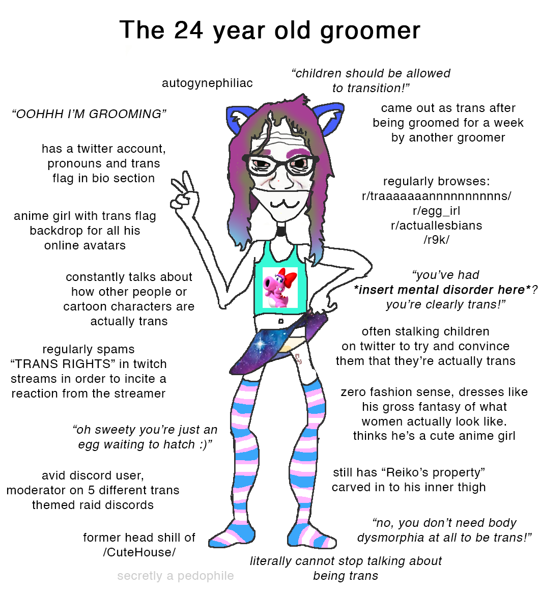 >>737378330Trannies are basically the same as pedophiles, they can't help themselves once they see a cute boy.