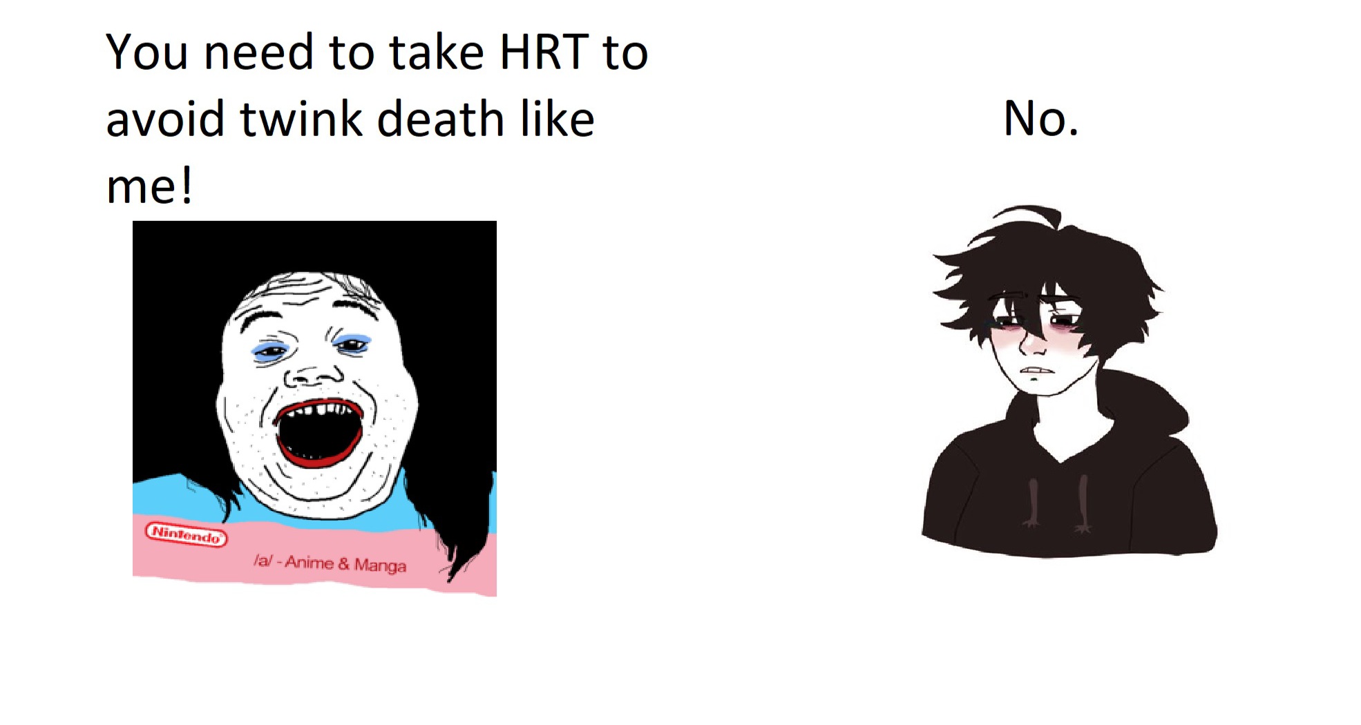 >>737367257I wss interested in Bridget BECAUSE he was a cute dude. I emphasized with the "you can still be a man and be into feminine things/wear feminine clothing" aspect. Now its just reinforcing gender stereotypes. "Oh you like feminine stuff, thay means your Trans lol" fucking god just let me be a normal gay man. I have to hear this shit irl too