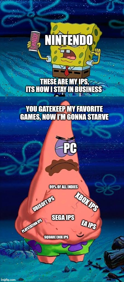 why does this image offend pc gamers so much? they act like nintendo is the second coming of satan mean while pc centric companies like epic games are laying off billions of people