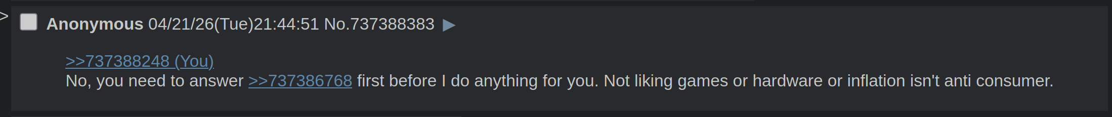 >>737393865 I can handle criticisms so my only retort is don't buy a Switch 2 of that's how you feel towards it.