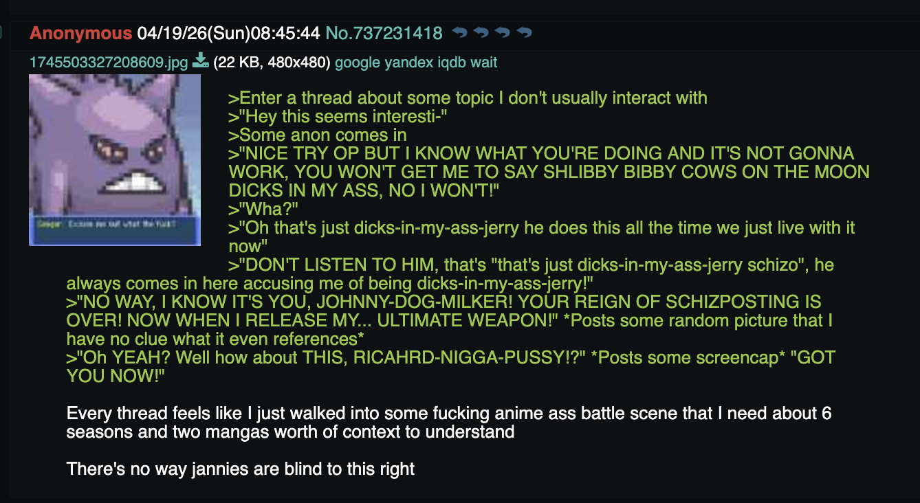 >>737393651Sorry anon, I just don't believe you. I know we did go apeshit over stealing persona, but that was specifically to troll eric
