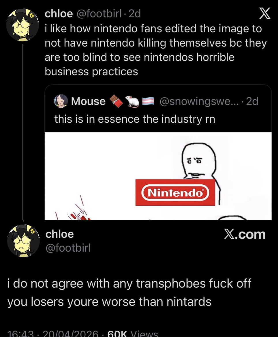>>737393687nintendo fans are on the right side of history, chud