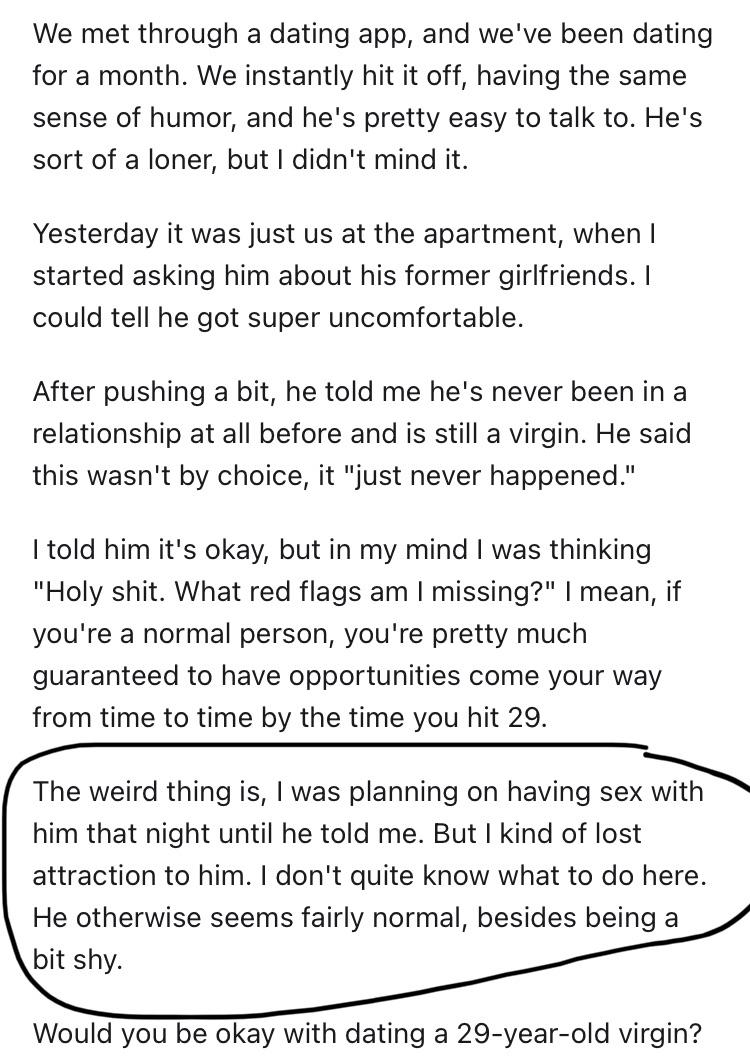 >>737391827yeah right, as if the very fact that you were a 31 yo virgin wouldn't give her the ick