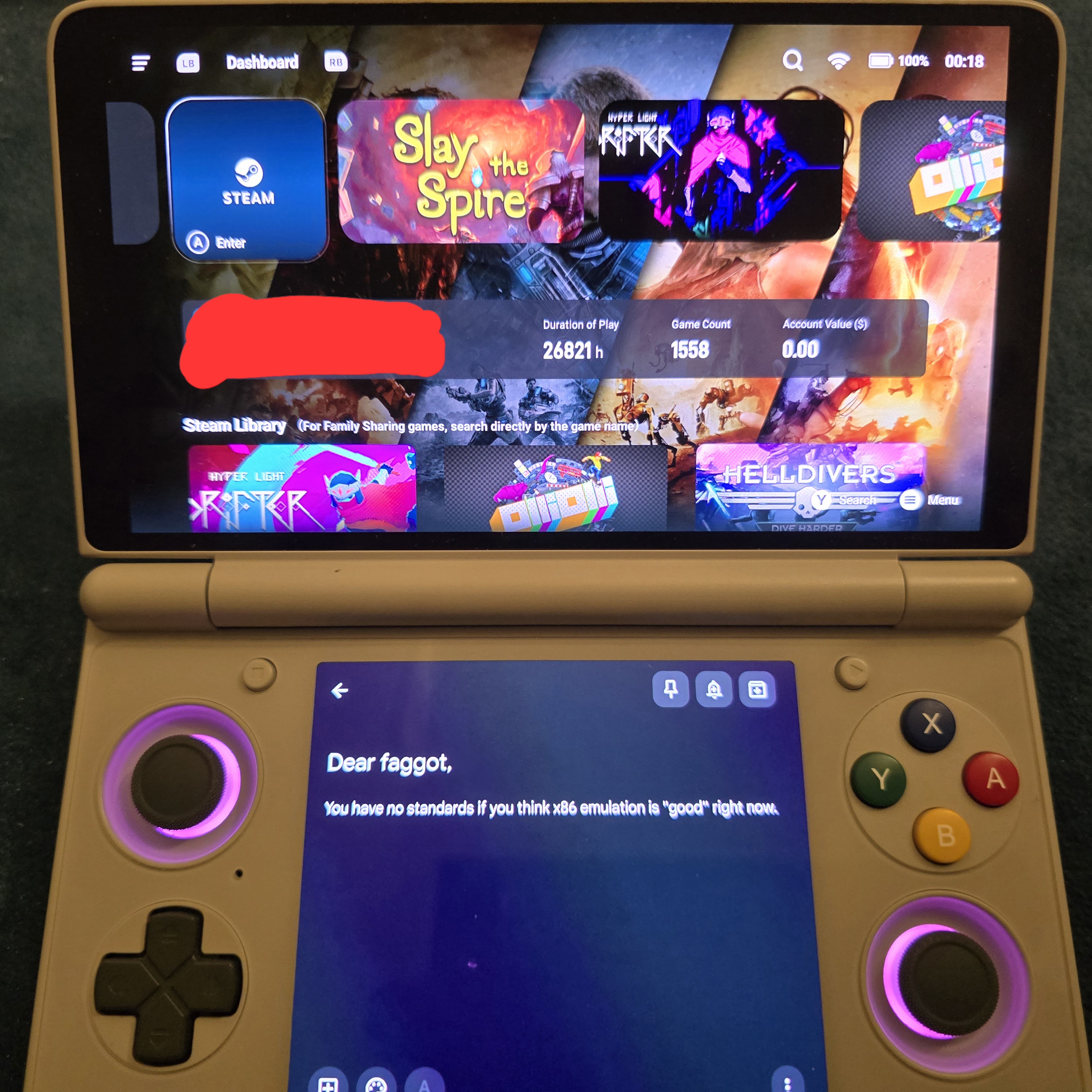 >>737395673Have you seen thorniggers acutally tinkertroon with their windows emus? Its all still shit. Not as shit in the exagear days, but still pretty shit. Redmagic have less of this problem.