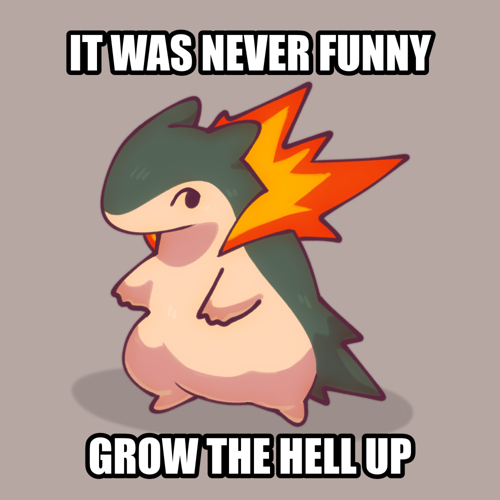 Remember when you all made threads about typhlosion and how it was a rapist, forcing the meme for weeks?damn that shit was embarrassing, its like remembering your emo days