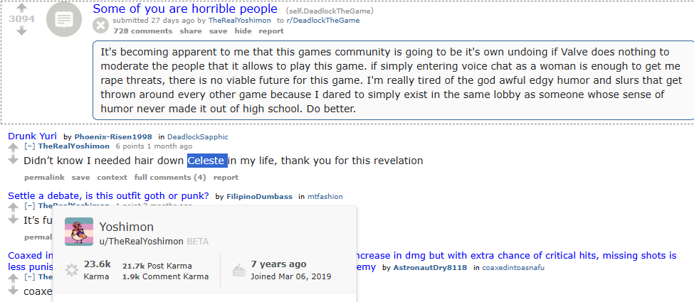 >>737452312???im saying that celeste's (deadlock) name and color palette aren't homages at all. also, pink, purple, and sky blue are color motifs for unicorns that have existed for decades. im literally agreeing with you that celeste (deadlock) isn't a tranny, but you thinking that she's an homage to celeste (celeste) is nonsense reaching. the tranny mc in celeste isn't even named celeste, it's madeline (apparently) and celeste is the name of the mountain.