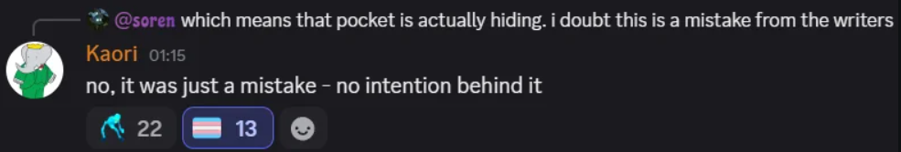 >>737462207the only pronoun he uses for pocket in voicelines is heir, which is male gendered