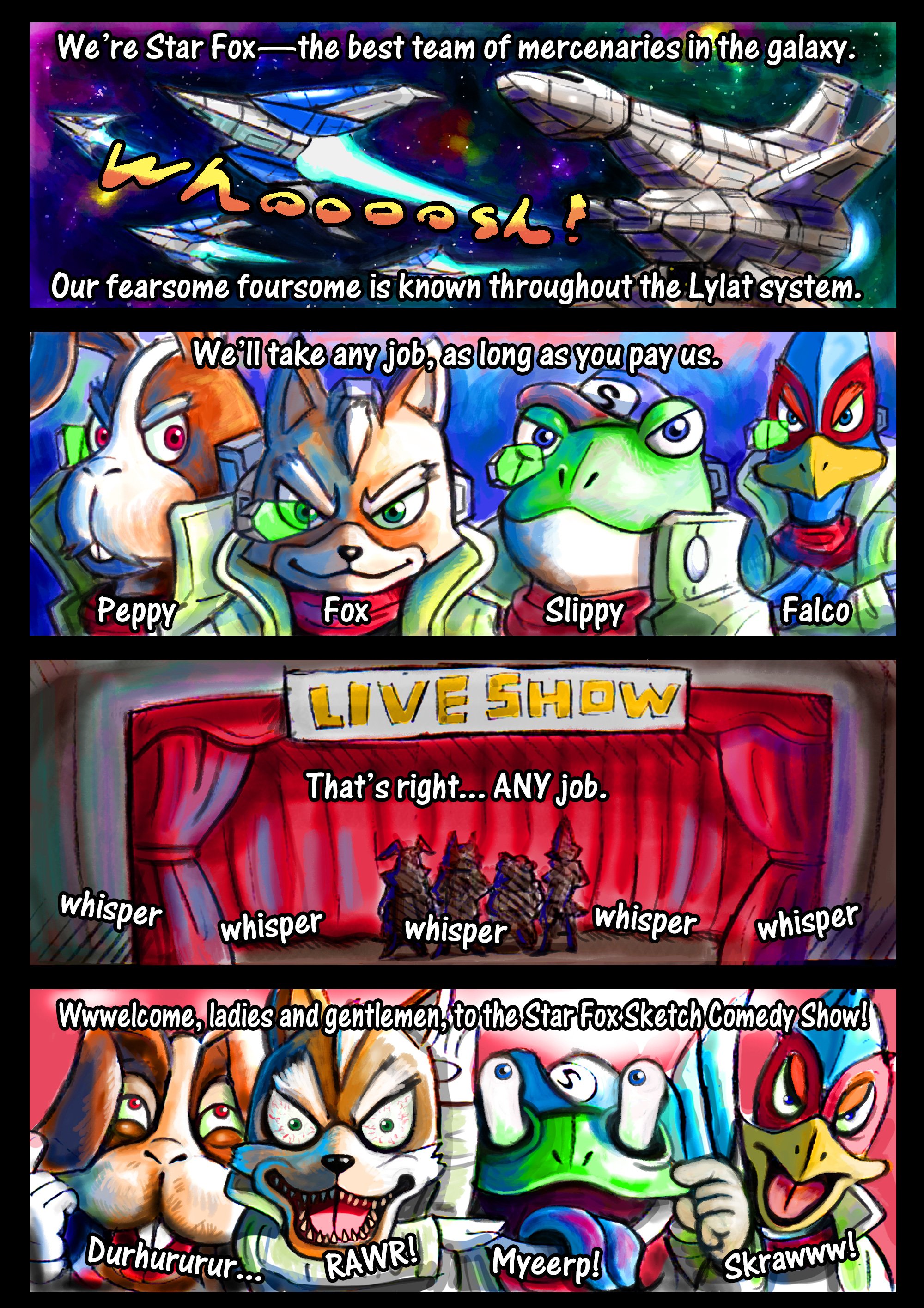 https://youtu.be/Y3DqhUEXTN0?si=YQLBGWV4s-YU_3fwJust imagine this but with Starfox characters, witty dialogue, and SFXs. It will literally be an instant hit.
