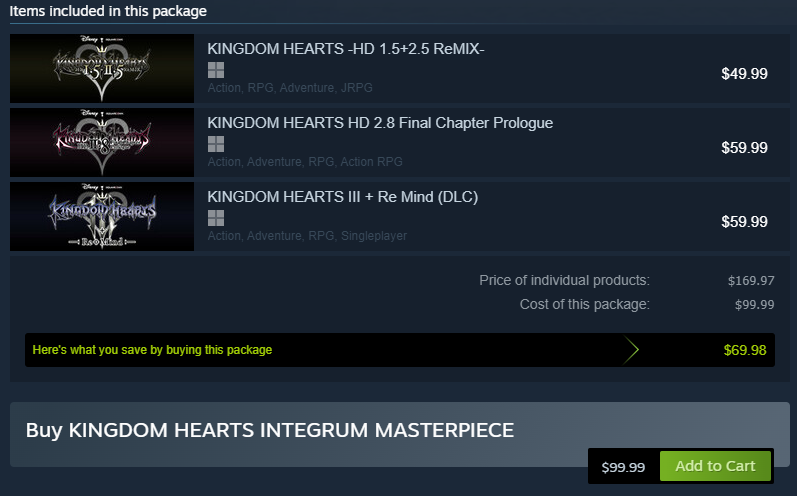 >>737404668>which ones are actually gamesThey're all games, though the collections turn '358/2 Days' and Re:Coded into movies. The collections also don't include the (now defunct) mobile games but do have a CG movie covering some of the story from a different perspective than the player characters>which ones are worth playingUnfortunately, ALL of them. There's no game that doesn't have important lore and story bits that pop up in future games.Also, play them in release order NOT the order on the collections. They put Days in front of KH2 and while it can be experienced that way ,it's better to go in with only the knowledge of KH1 and Re:CoM (because nothing really important to the events of KH2 happen in Days that isn't at least partially explained in CoM or KH2, while the events of Days are more important to FUTURE games like Coded, DDD and KH3).
