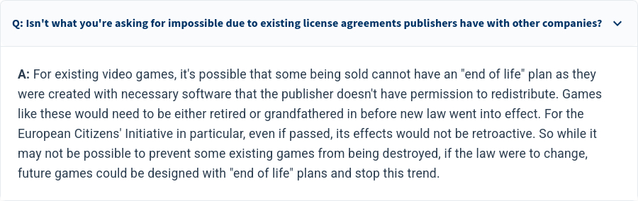 >>737414827>could be addressed through better enforcement or adaption of existing rulesin other words: the EU commission does not intend to take any action>duration of supplySKG doesn't demand that games get sold indefinitelygot a link to the statement? or did you pull it out of your ass?