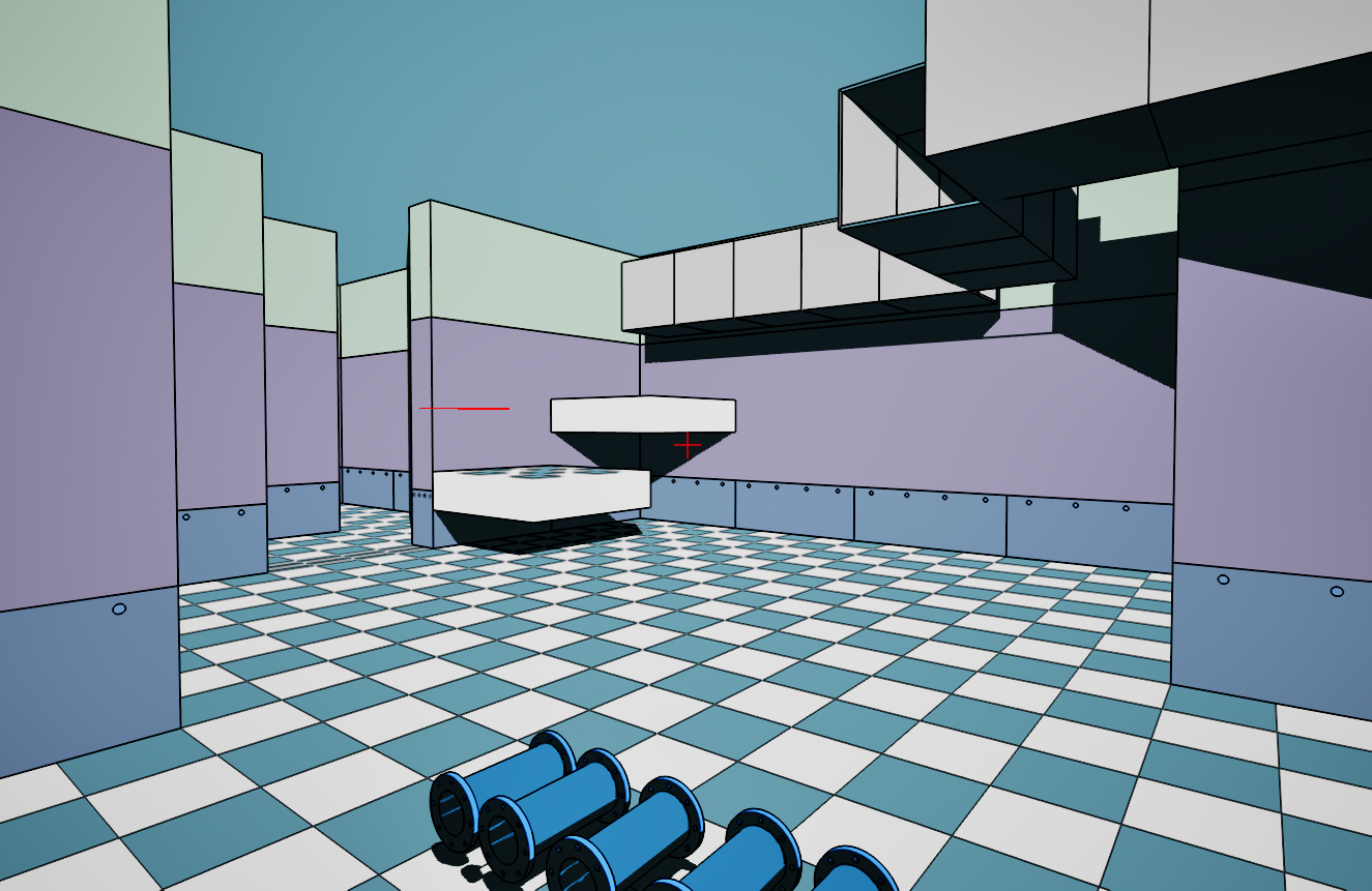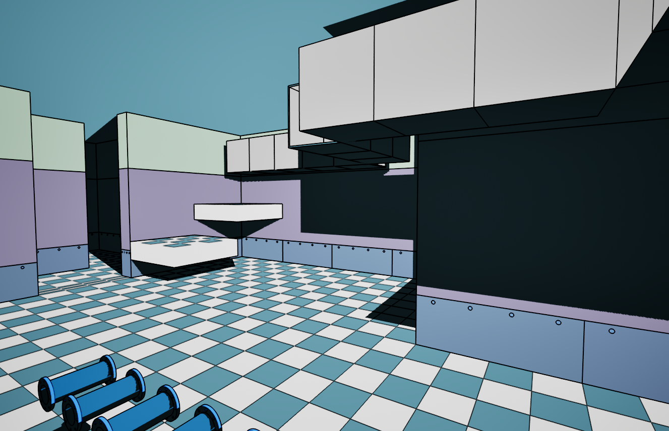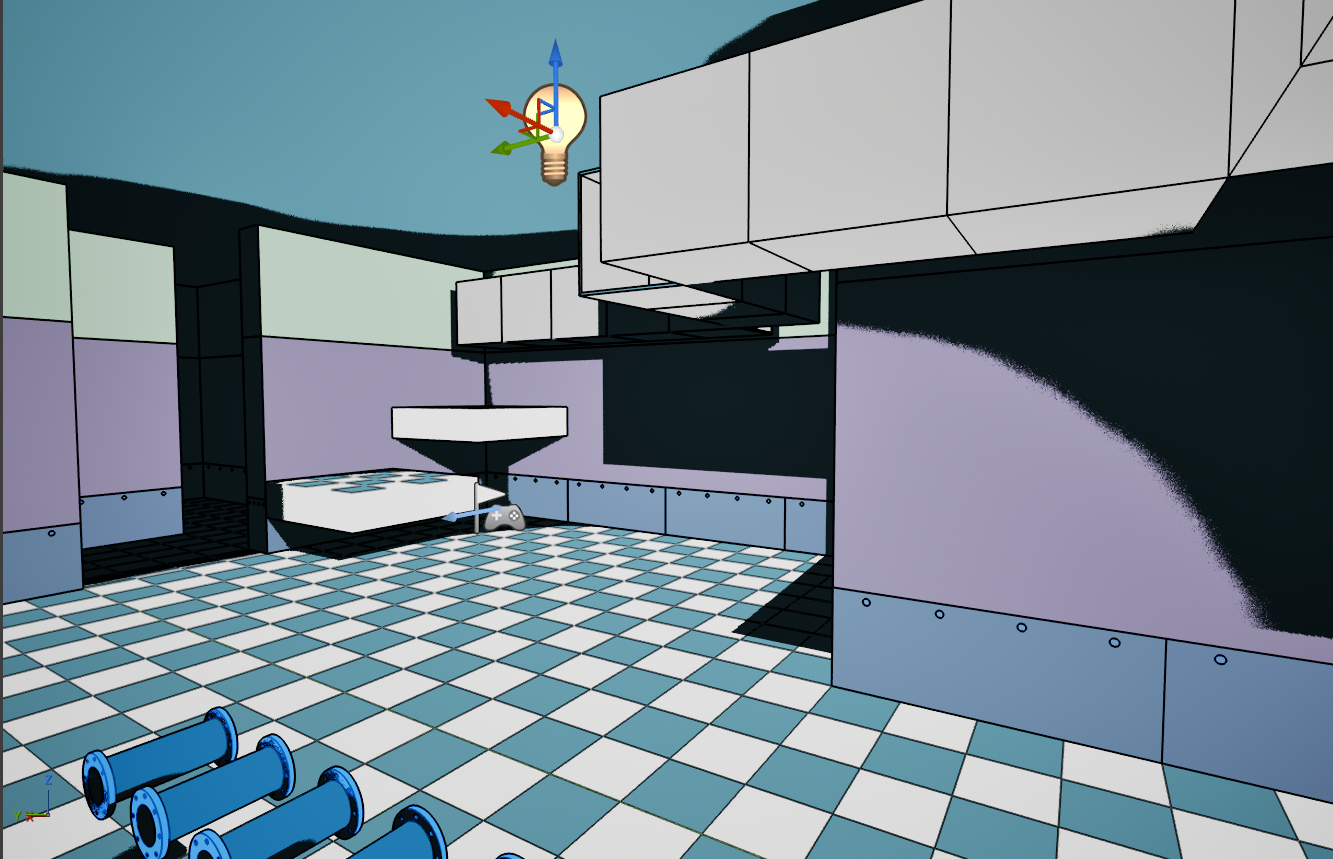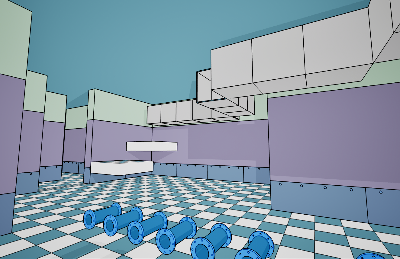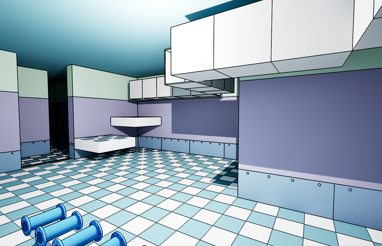 >>737435916>look at the floor tiles in shadow. you can't even see the color any more.This is a night time scene lighting so the shadows replace colour, this is what it looks like in day timeI think what I'm going to do with the pipes is just turn off the shadows if they are in direct light