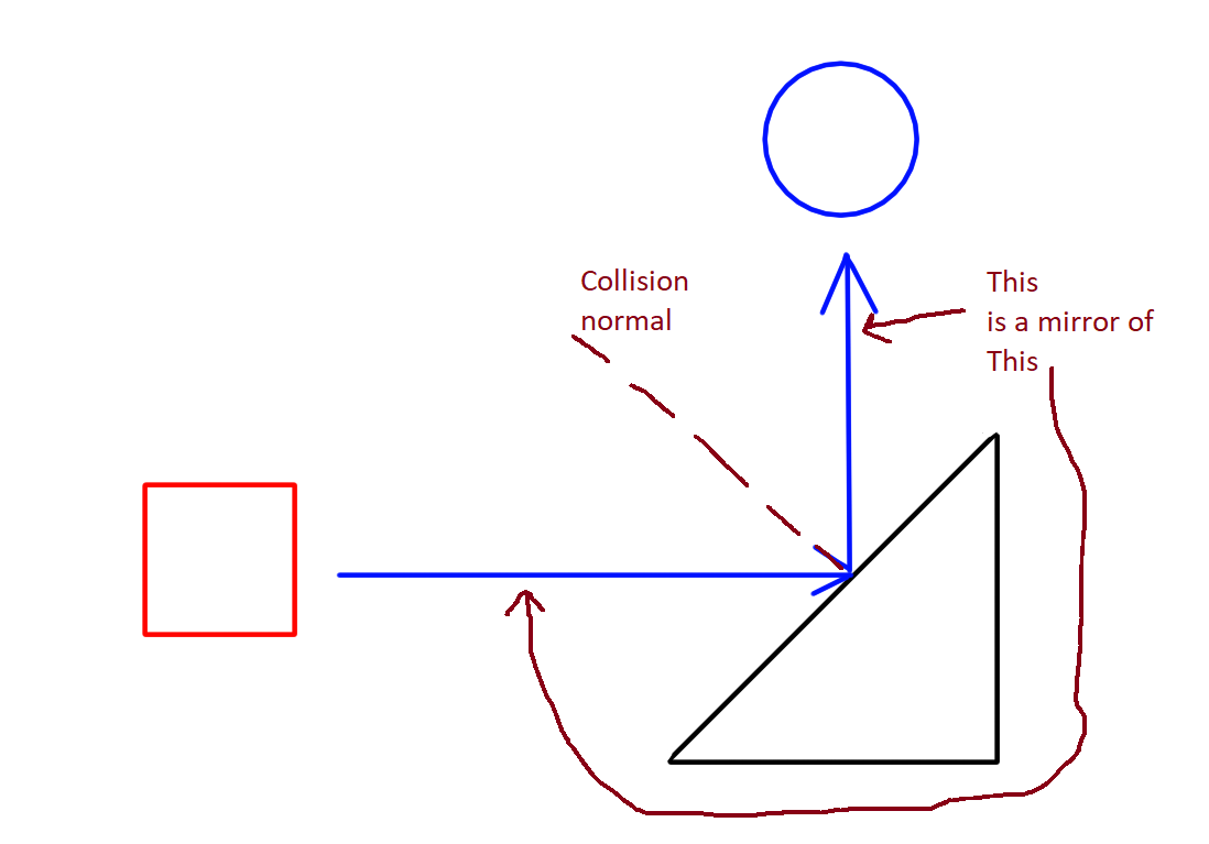 >>737432515How would you recommend doing this in a 2D game? Specifically I want:>momentum and slope interaction like Sonic does, for the player>pinball ball physics for things he throwsYou already explained the general idea of calculations for the player's momentum, and I can go from there, but to grossly over simplify things visually, >red square throws blue circle perfectly horizontally at 45 degree blue triangle>blue circle impacts blue triangle and is sent vertically up, redirected 90 degrees counter clockwisethat and how would you suggest handling the senors for the player's detection of slopes in 2D?