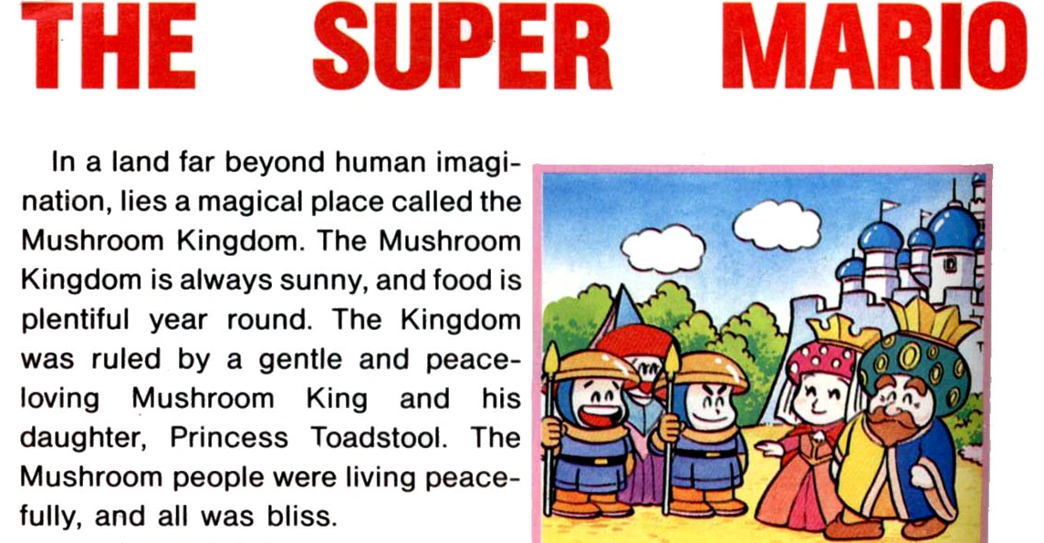 >>737443909The point I was making is that the manga does not matter in relation for the games. The Mushroom King only slightly rises above an OC in the sense that he's based on a concept Nintendo dropped, seemingly as soon as SMB2 or 3. He only existed for a relatively short point in time (apparently not even making it to the Japanese manuals).>I guarantee you that Peach being fom space was not even a thought on Miyamoto's head when he created herObviously. But I doubt Miyamoto gave much thought to Peach's backstory beyond "she's the princess of the Mushroom Kingdom and can undo Bowser's curse" until Galaxy when the question of if or how she's related to Rosalina came along.It's like complaining how Yoshi's Island retcons/overcomplicates the Brooklyn backstory.
