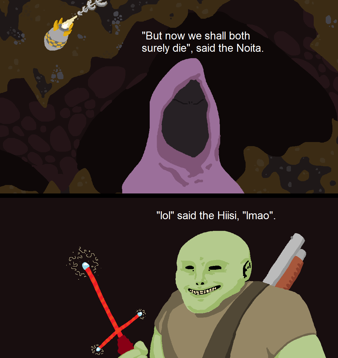 >>737435361>grimdark finnish autism one man show gameThis shit was prime 4chinz videogame and somehow normalfags still ended up playing it in droves and making 12 hr pseud video essays on it. Truly can't have anything nice nowadays.