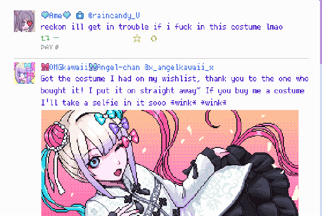 This reminds me, when some people do stories or games about women with a lot of issues, they never really have it reflecting on their appearances. they almost always look super cute and without anything showing they are messy on the outside.I'm not saying "make them look very ugly" but let's be real, if a person is in a very fucked up mindset and living unhealthily, it will reflect on their appearances. Even to people who looks alright or could look good if they were fine.Even if they try to dress well, it can be clothing that don't really fit as well, badly kept hairs, imperfections on their body or skin, eyes that don't look very right, and more.When some people do stories like this about dudes, they sometime (not always) remember this, but it's almost never the case with women.It's like people who do these don't actually want to show the real look of these issues, just a "clean" version of it? I don't know if it's the right term to use here.