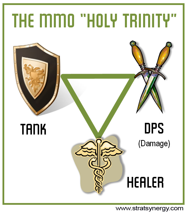 give every class the ability to do all three and then make specific fights and enemies that require different classes to do a different role every fight. like one fight needs a mage bubble tank and a shout warrior to buff and heal and then another fight needs a rogue dodge tanking with a priest blasting with holy damage