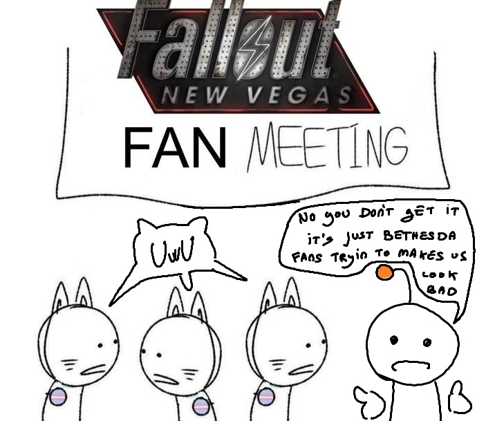 /v/ spent literal years telling everyone how New Vegas is the best game ever made and how Obsidian is the savior of gaming and all this other delusional bs that's meant to paint Bethesda as this scary boogeyman who is hated by everyone who ever worked on classic Fallout. In reality Fallout is the most popular it's ever been primarily thanks to what Bethesda has done with it and the franchise is thriving to the point where it's basically a household name on par with Marvel or Star Wars. Meanwhile Obsidian released a couple of games that were just okay but retards still cling onto this almost 20 year old spin-off game as proof that they're the "better devs" because they want any reason they can get to stay angry at a fucking video game.