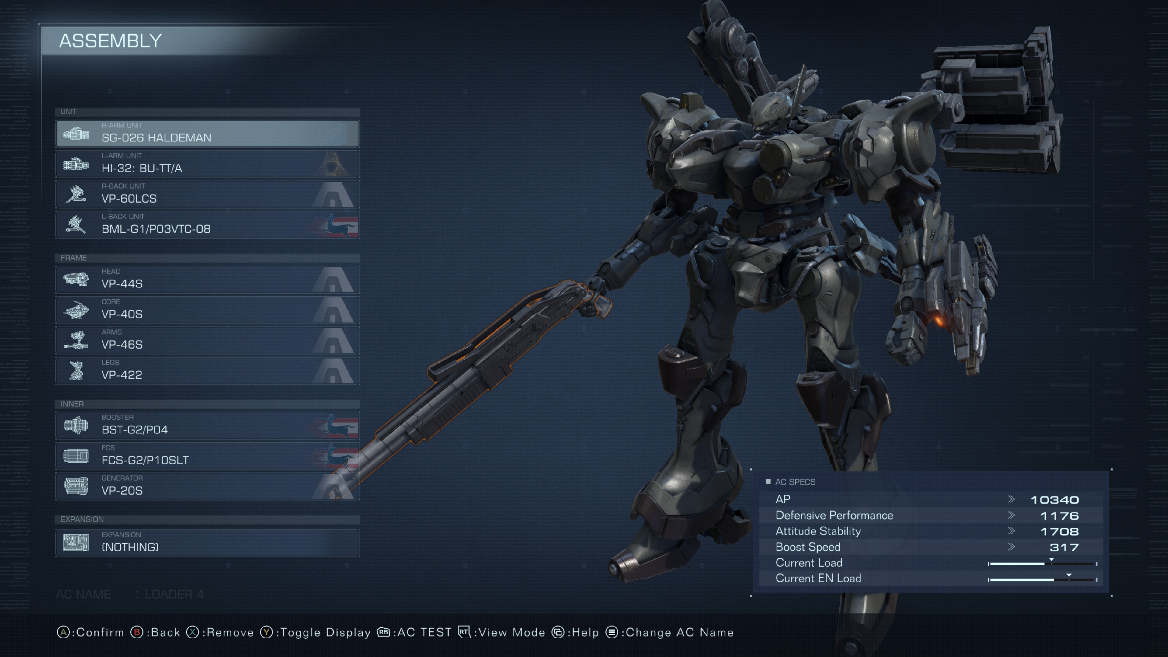 First build after swapping out all of the default parts. Was going for a jack of all trade's build and didn't really know what I was going for besides having a melee to capitalize on stun windows. This build saw the least amount of playtime, but I learned a lot of what not to do in it.