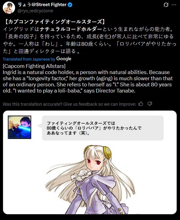 >>737458705It's odd that Street Fighter is full of so much magic bullshit, but something about Ingrid's space god magic bullshit specifically just feels weirdly out of place.