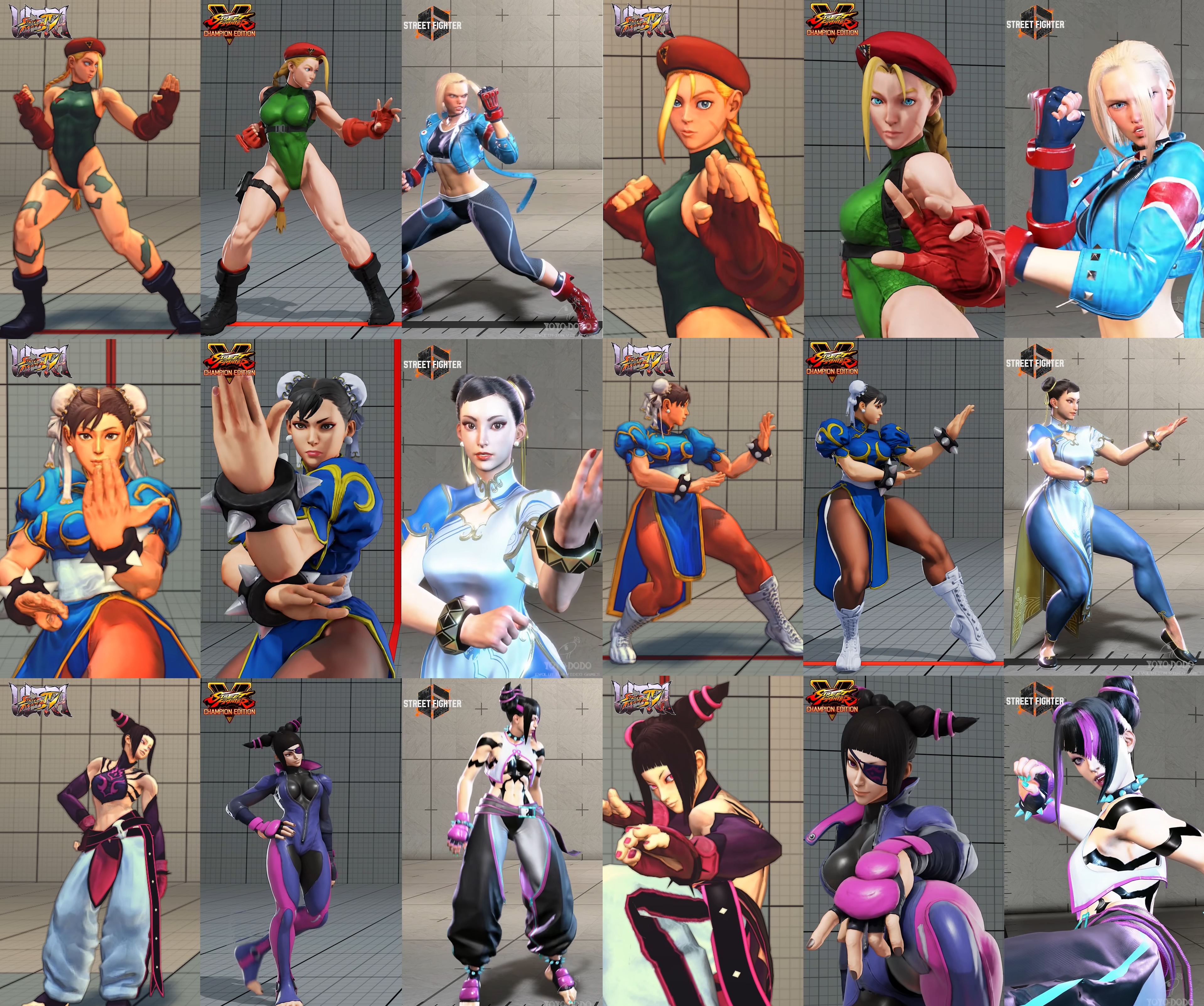 Manon - revoltingMarisa - no comment neededKimberly - Aunt Jemima caricature freakLily - didnt even attempt to make her cuteChun Li - old looking in default costumeAKI - "hey lets make the nastiest looking albino chick in all of fighting games!"C.Viper - "Lets make this hot J.Lo woman have the most ridiculous Austin Powers 70s spy outfit!"Ingrid - wacked out Anna Taylor Joy magical girl edition