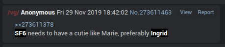 Her moveset looks so fucking funnyI hope she's stupidly overpowered and the next capcom cup has like 8 Ingrids