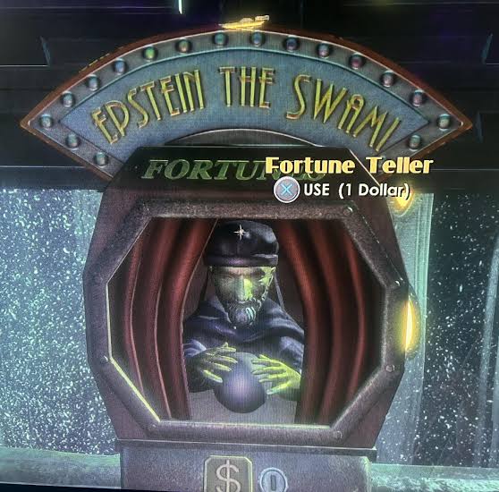 >>737465245>franchinsesGood morning saar.Epstein the Swami is the name of the coin operated fortune telling vending machines found in Rapture. Sounds like him and looks like him too.