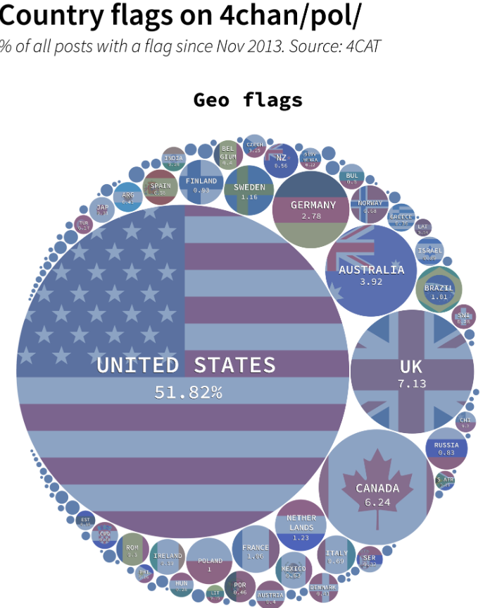 >>737491549this is all US, then you add the other EU vassal states like Germany and Sweden and it's easily 80%. "4chan is overran by russian bots, I mean jeets, I mean chinks" is a massive cope on the part of ESLs. this really is America