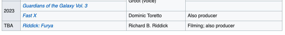 >>737487887>Can you imagine 60 year old Vin as Riddick? He doesn't even bother to be in shape unlike The Rock or Batista, he's fat, bloated and bitchyWhich makes one wonder how the next movie will be. It's filming right now I think.