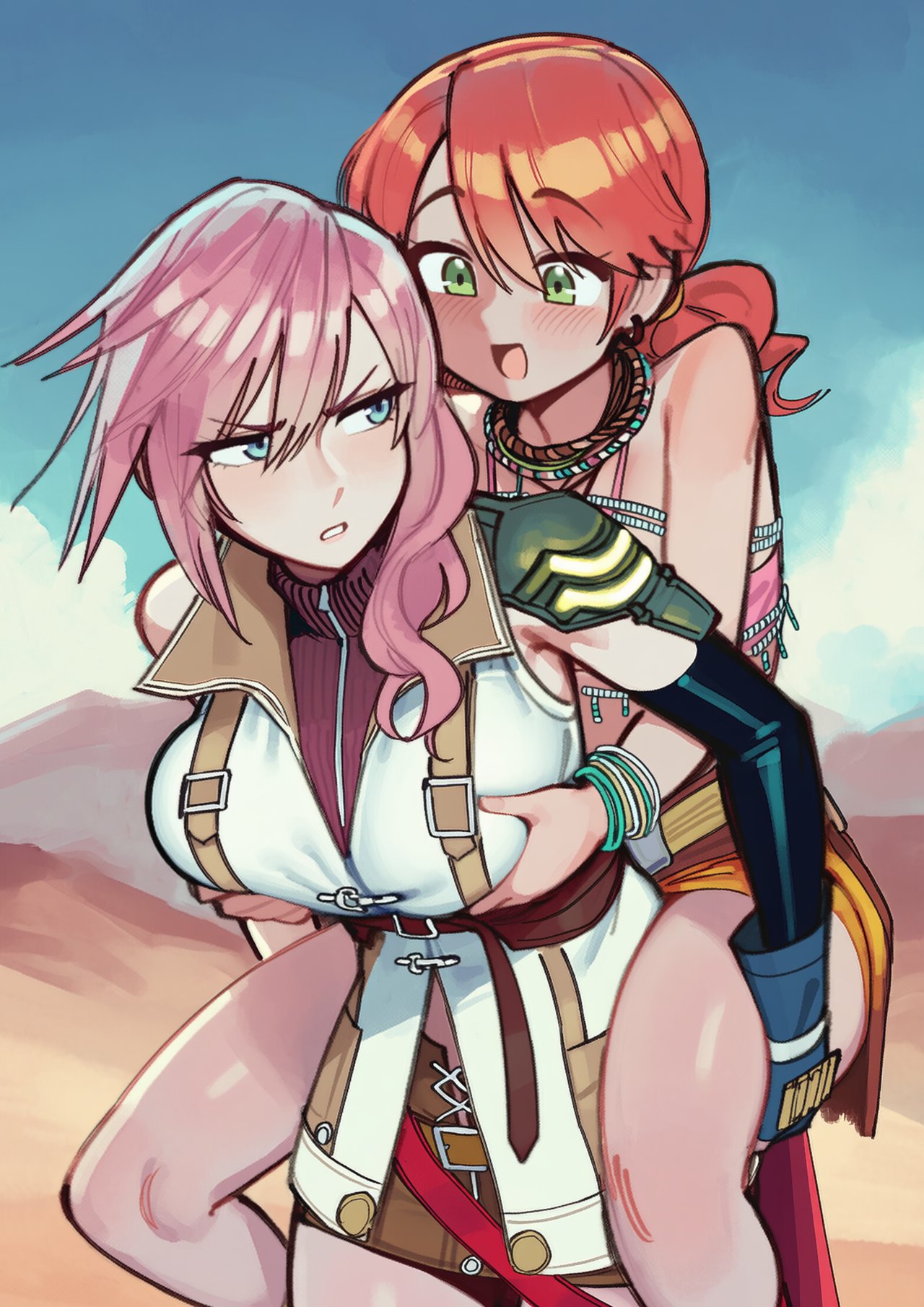 >>737543872Schizo argument for a schizo brain. Anon, I'll post another piece from him. Vanille is the kind of character that AI literally cannot do right. Her layered necklaces and wristbands make generative AI go berserk. And yet this image has both Vanille and Lightning, two very detailed characters, entirely on model. If you believe this is AI, you are flatly wrong; an AI could not make this image.