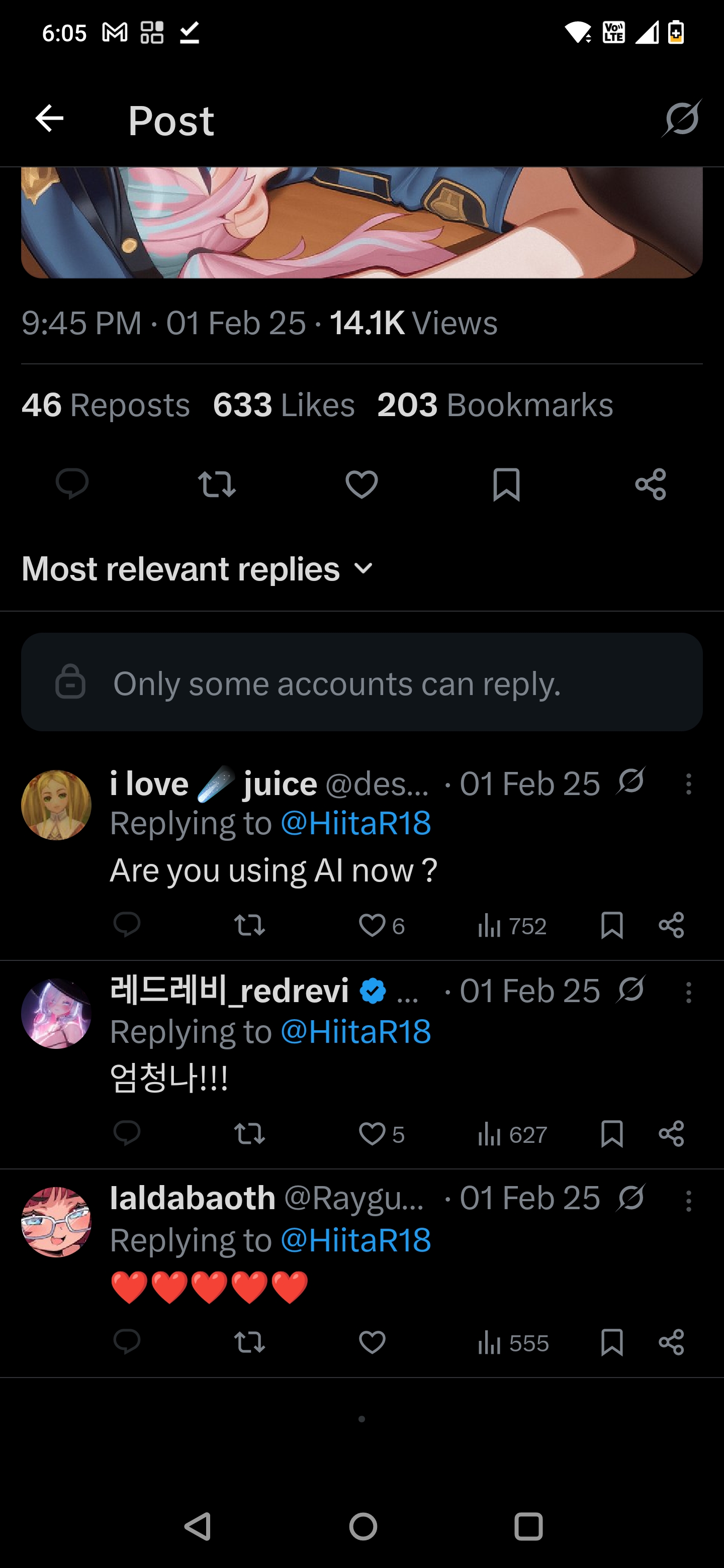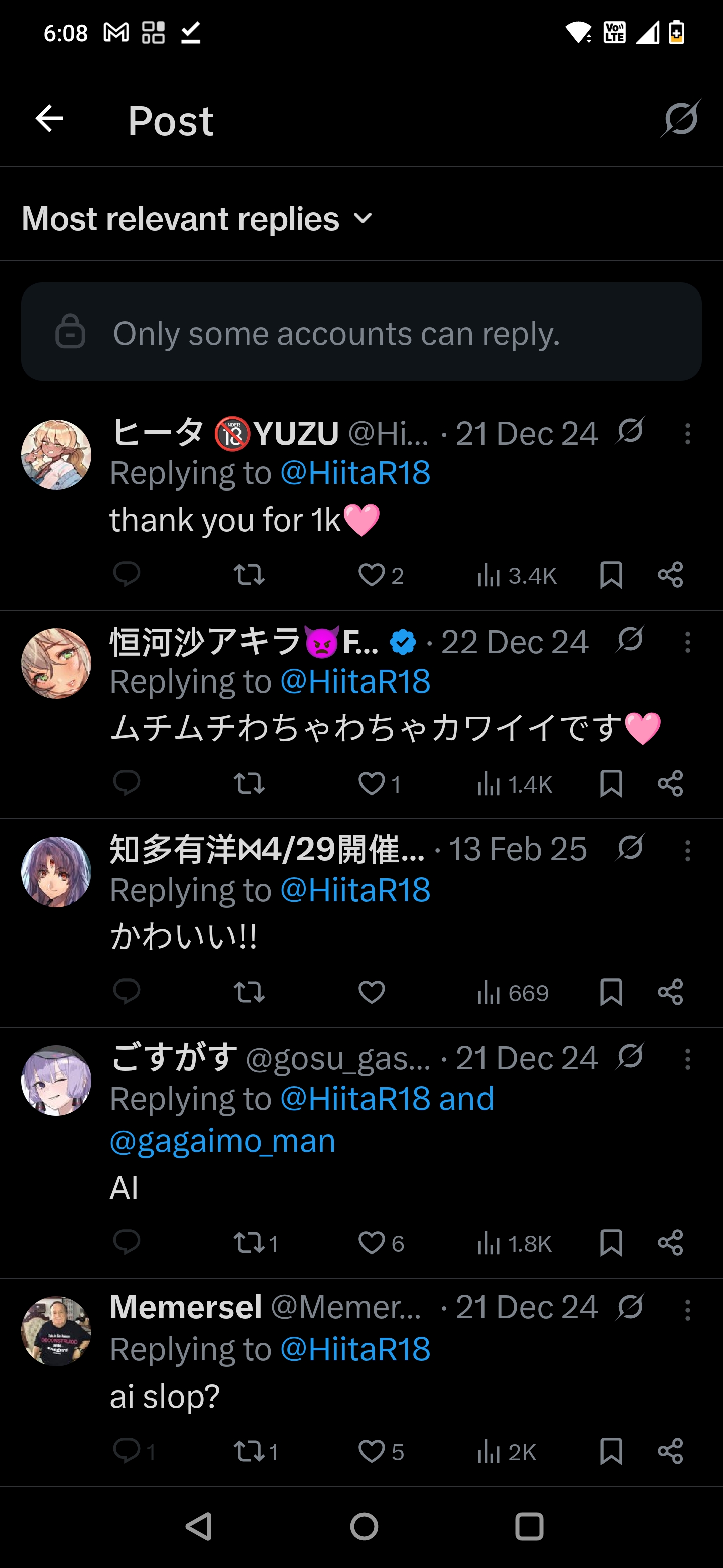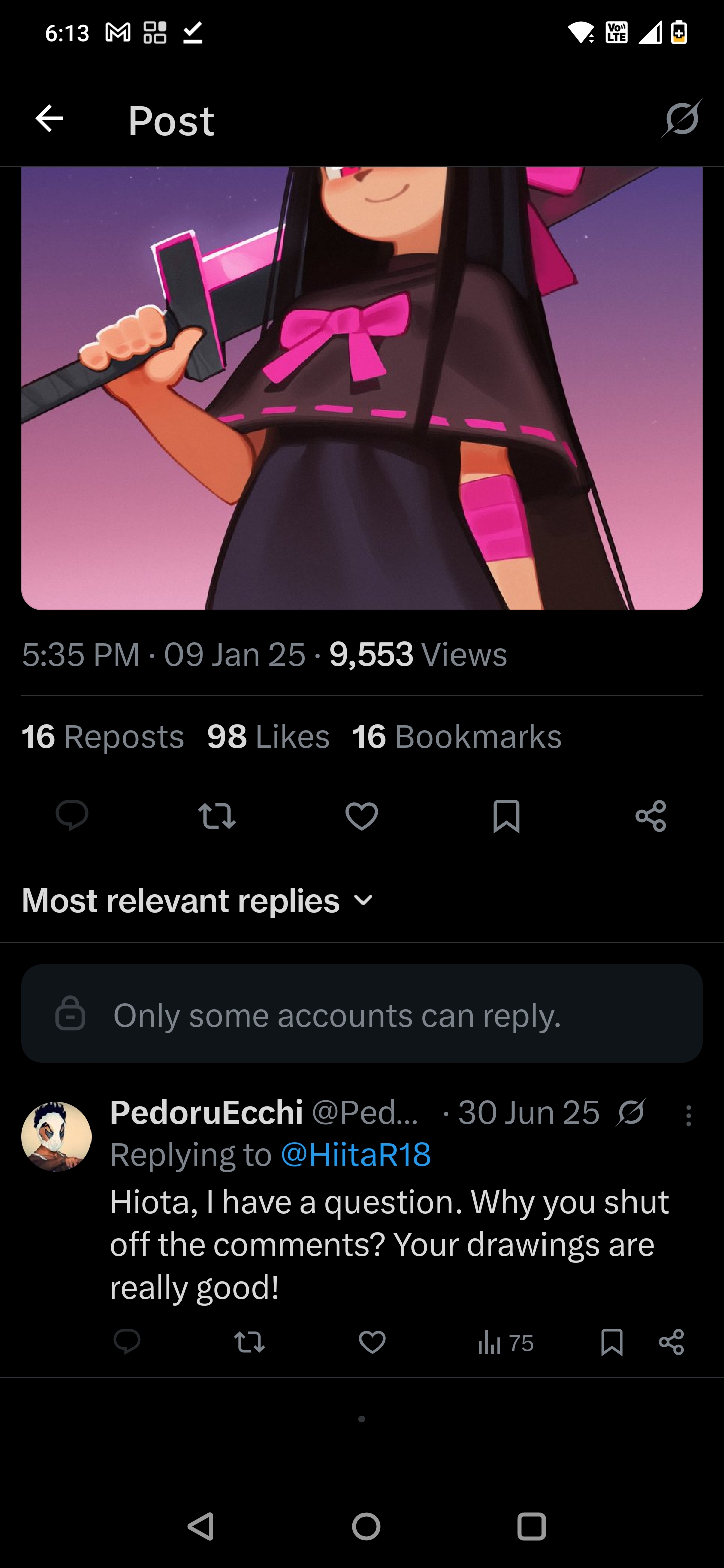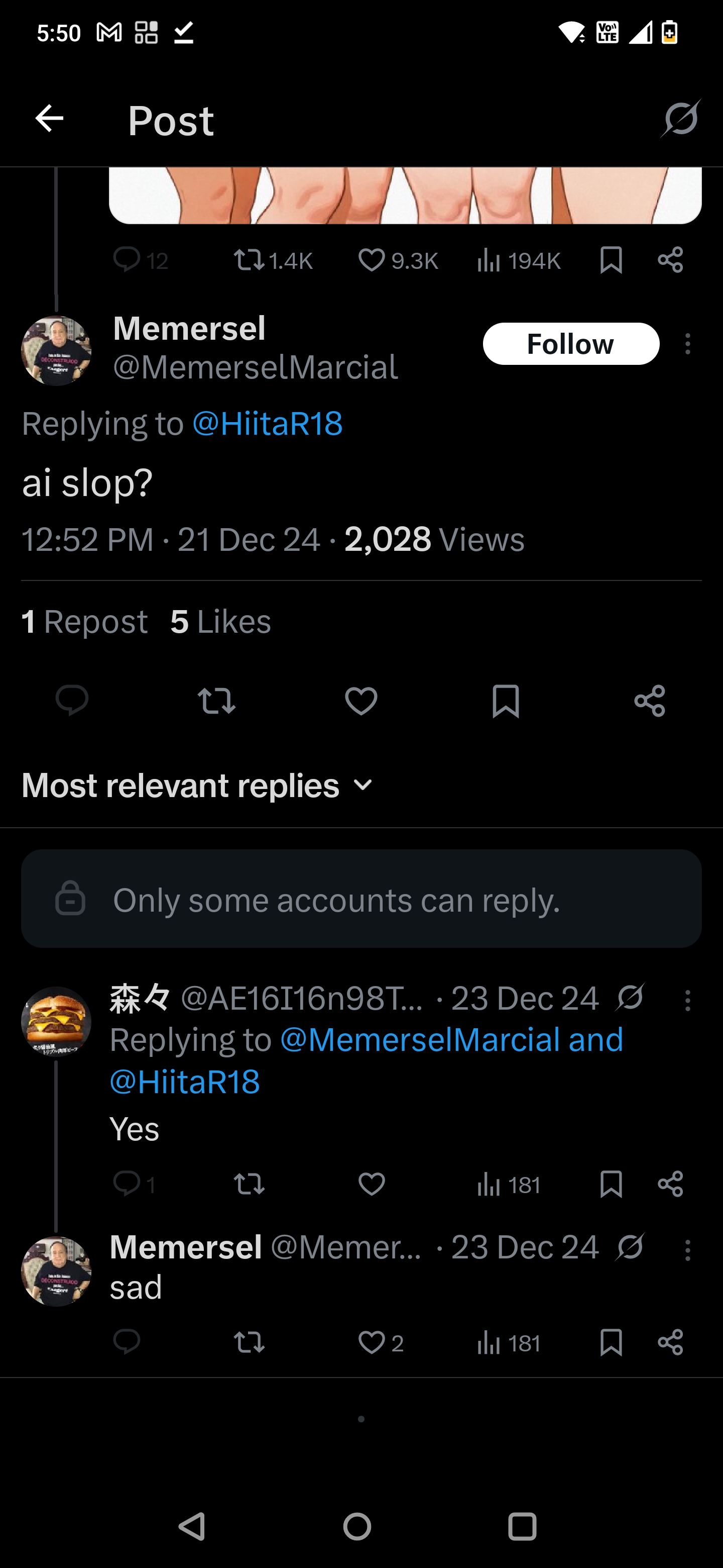>>737543795Comments were disabled cause people were obviously calling out his slop. Cmon dude I've seen these coomer AI slop accounts a thousand times how retarded are you