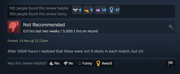 MOBA games are computer heroin. Eventually you realize that you haven't been having fun for a long time but you play anyway to feed your compulsion. Then you quit when you realize that you can't even find good smack anymore, every heroin game was turned into fentanyl that's even worse for your health but doesn't even feel great to play during those fleeting moments of actual fun.