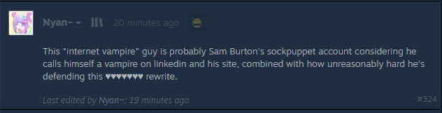 >>737555621>dicksscordAll trannies.>Steam forumsA whole page of angry complaining with hundreds of posts followed by silence because they're all resigned now and waiting for a re-translation.>XTrannies and the Japanese. No intersection between the two, the Japanese are obviously not exposed to this and don't care.