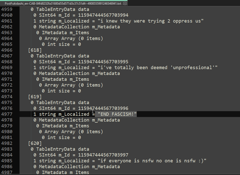 >>737554145It doesn't because it doesn't fit the era of the game at all. Like maybe you'd have a point if it used old english internet slang but it doesn't even do that.