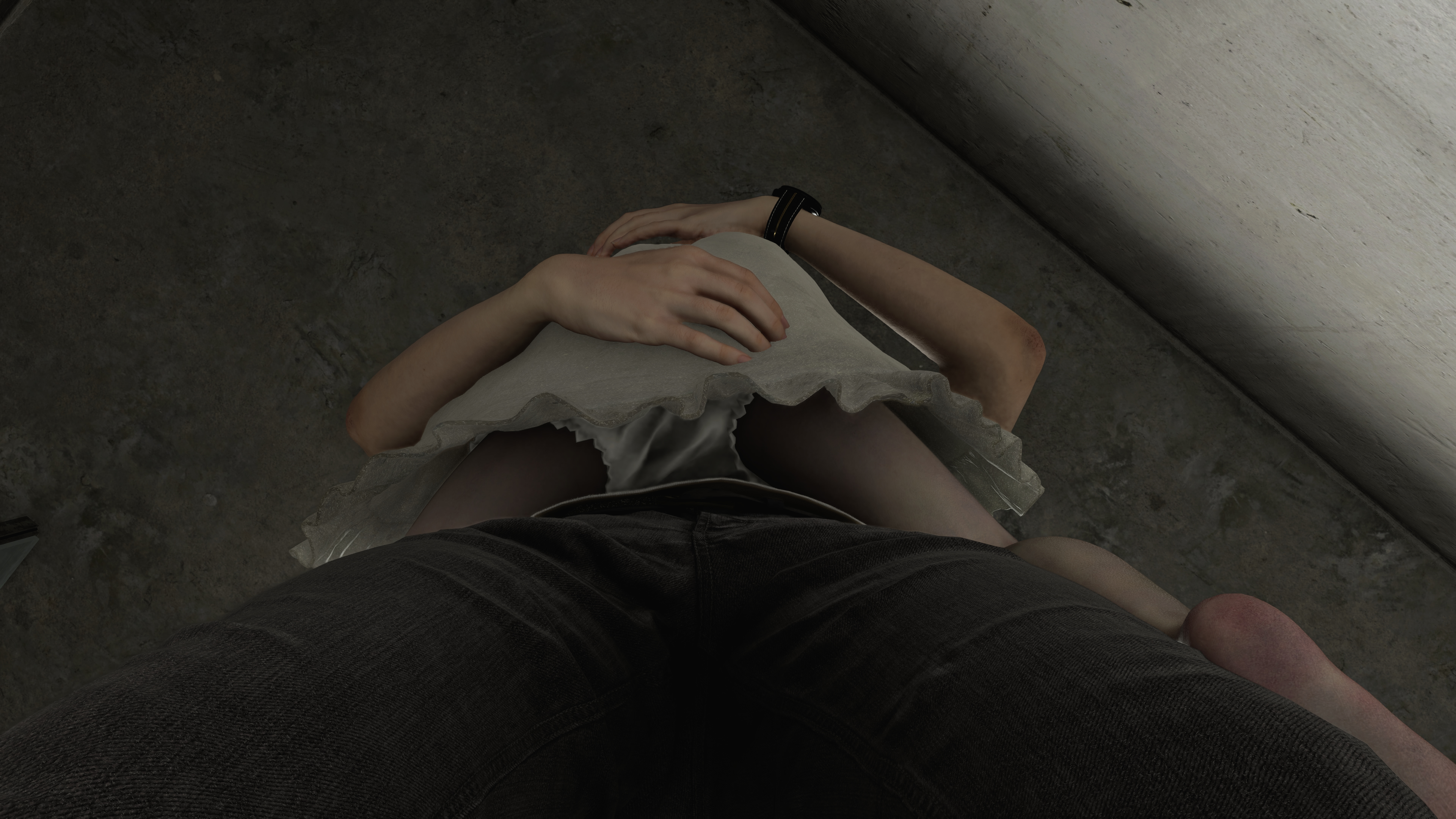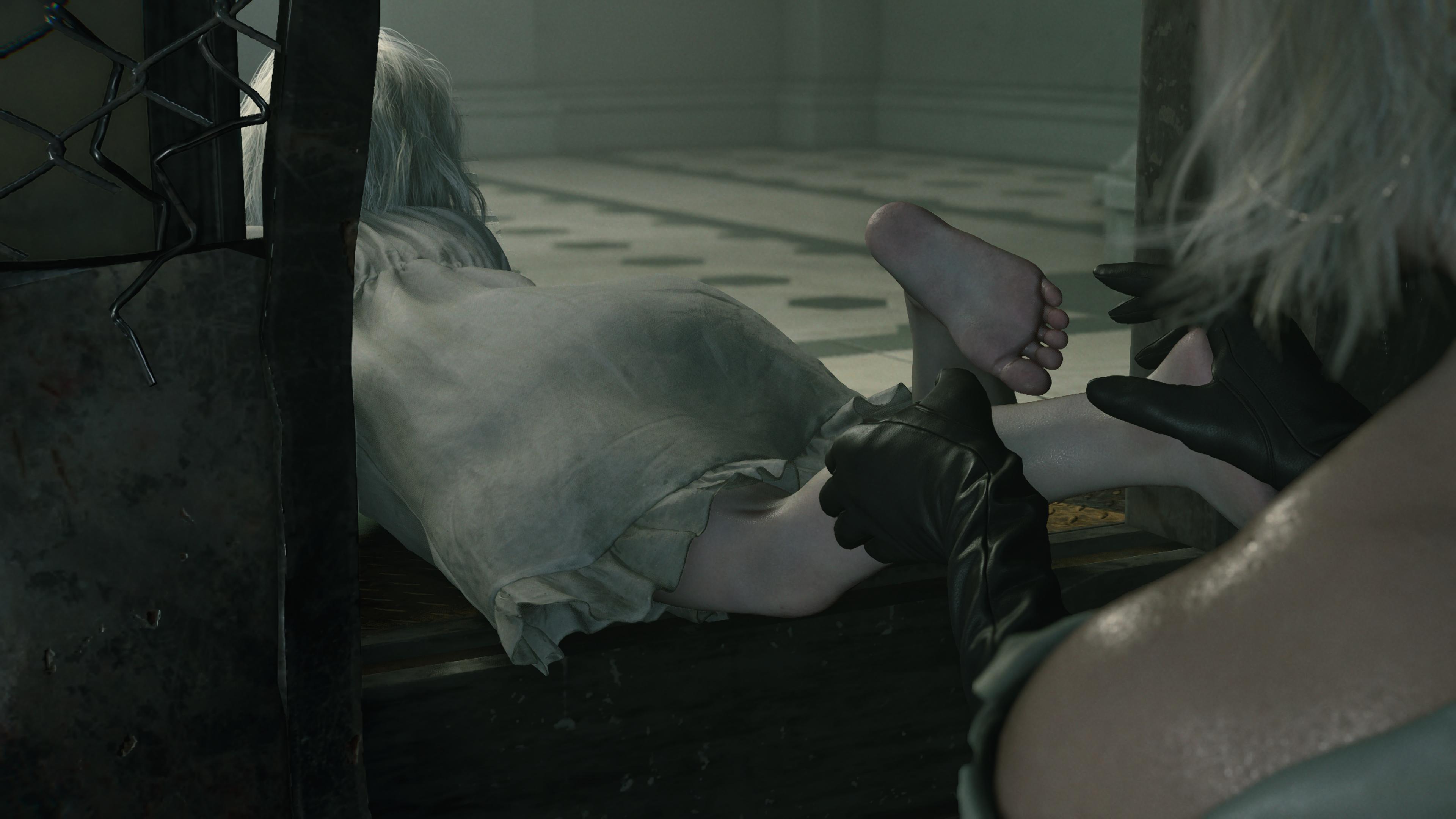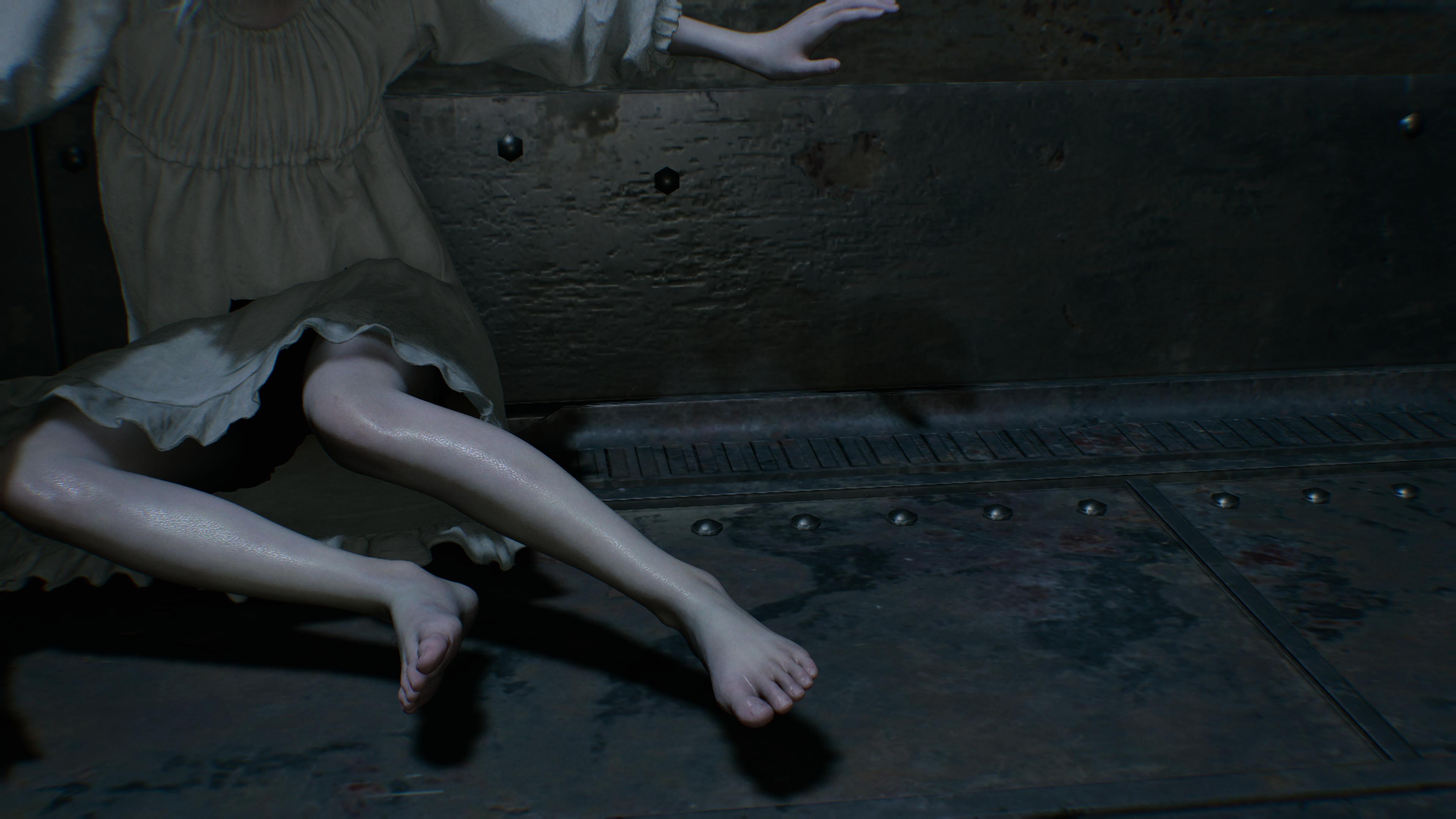 You can somewhat notice her thin lower half during gameplay and cutscenes. The game wont let yiu take screenshots of under her dress for obvious reasons but you can somewhat get a good idea of her lower body structure