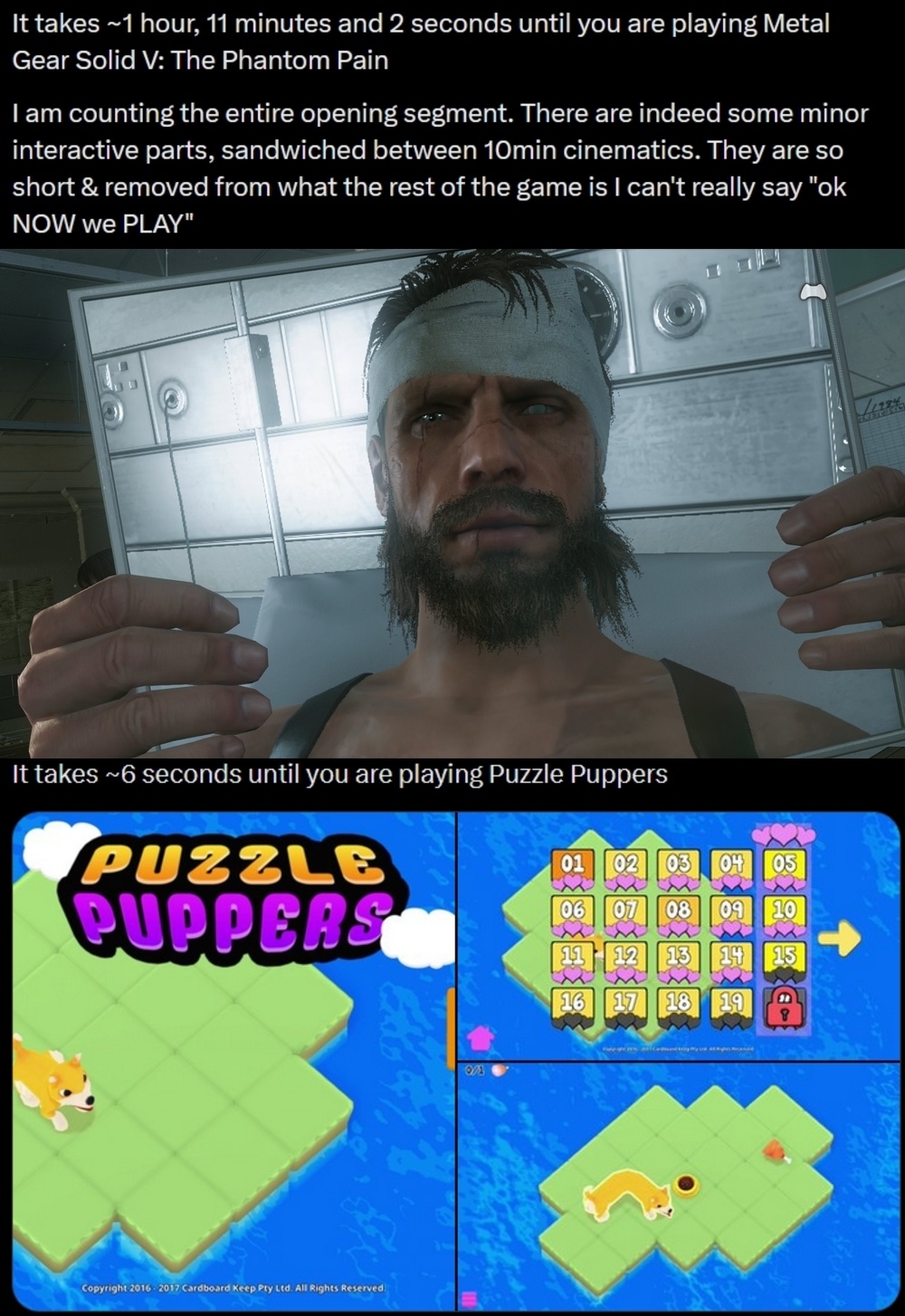 >>737552794>gameplay scenarioYou spend the first 30 minutes limping in corridors and hiding in lockers. It's as awful as MGS5's intro. By the time you can run and gun in EW, in RE4 you already fought the whole village in RE4 or freely explored the mansion and found the shotgun in RE1.