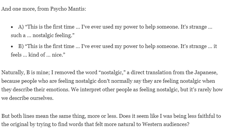 >>737561008the only actual solution to your problem is learning japanese.Every other language will have different kinds of translation and localization quirks that deviate from the reference.