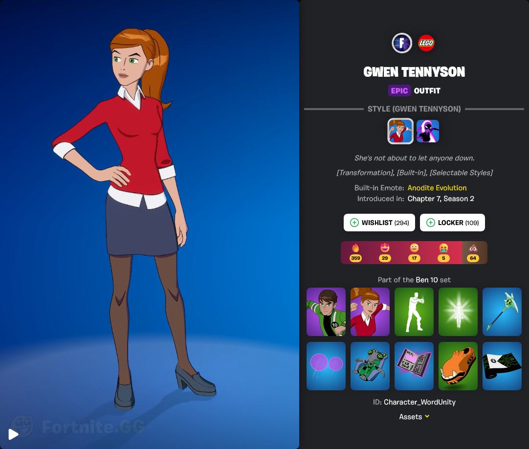 >>737566629because this design is shit. was always shit. regardless of fortnite. probably destroyed her design on purpose because the creators were pissed about the gooner focus on gwen
