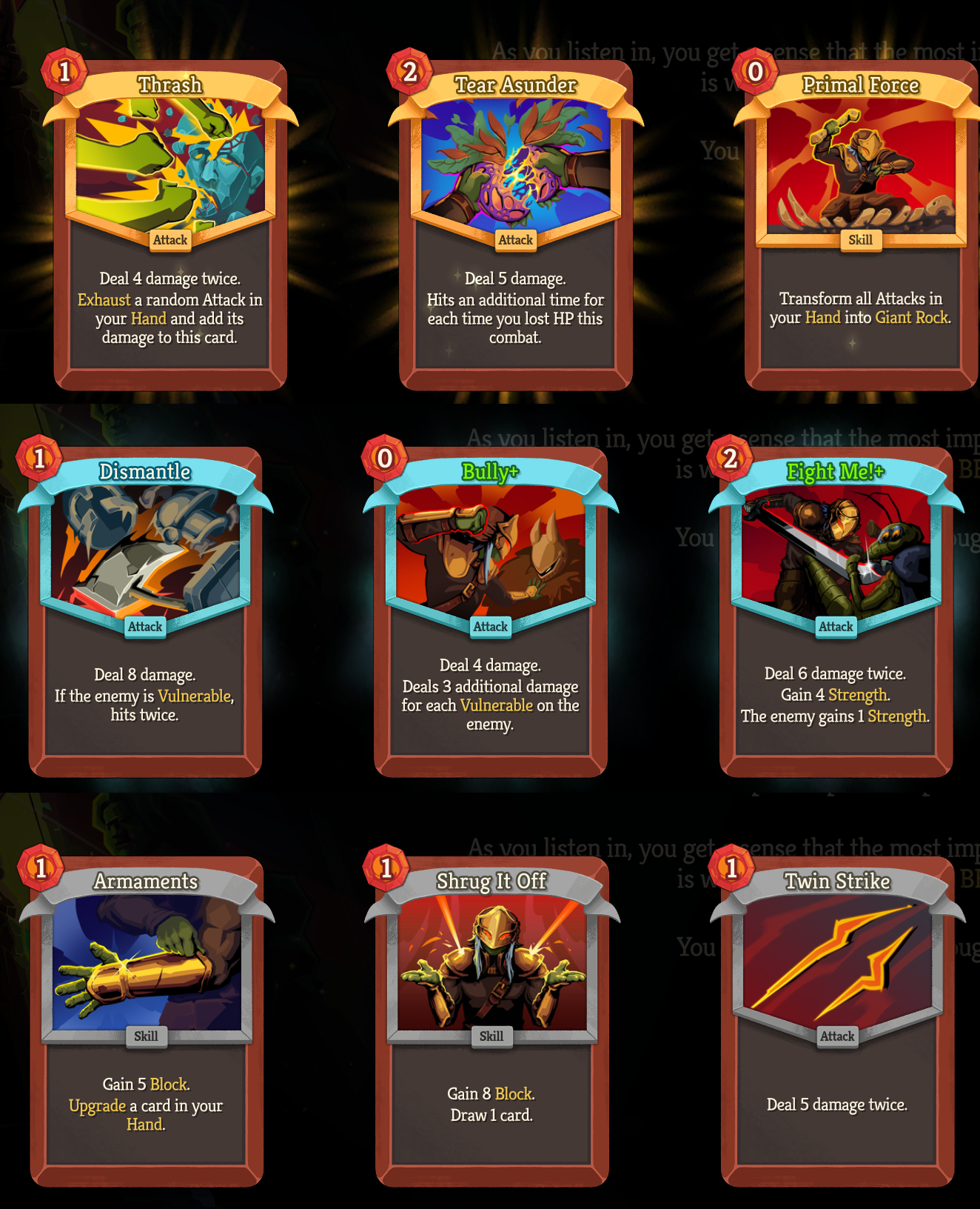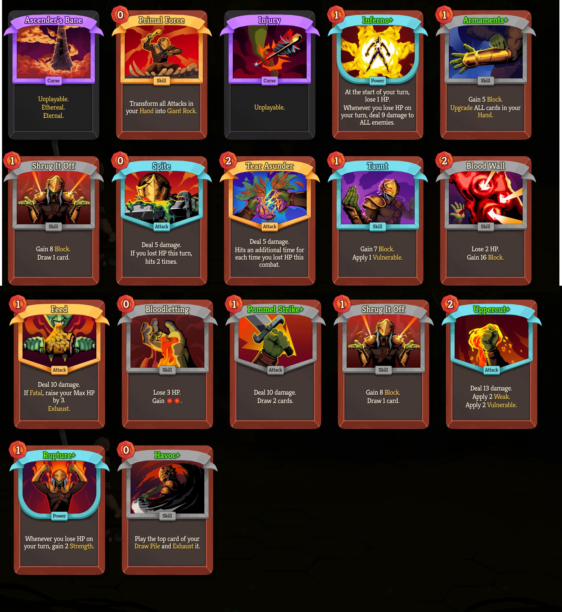 >>737618457> Ascender's BaneMore like gain 4 block, draw a card and increase Ashen Strike damage by 4