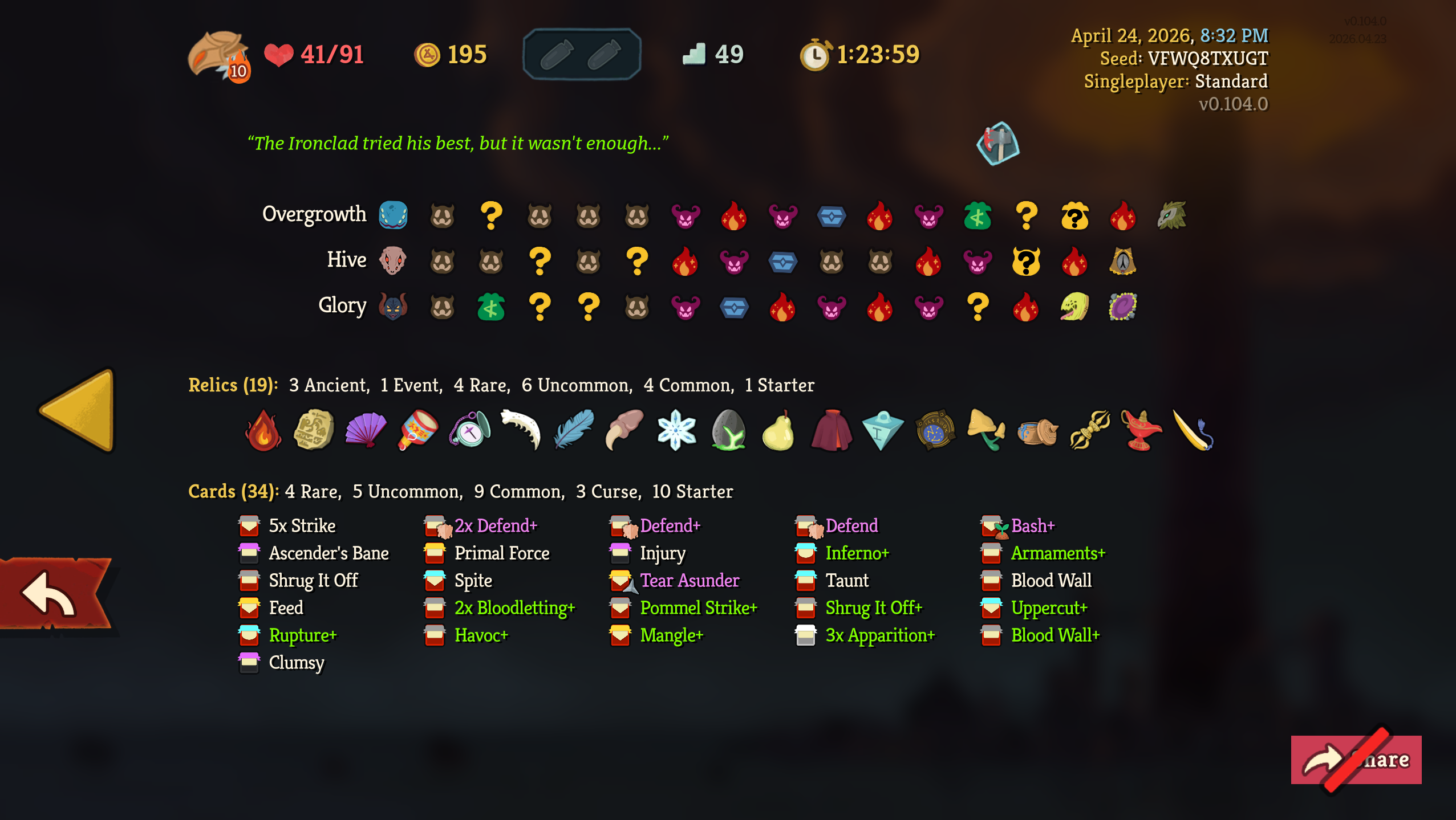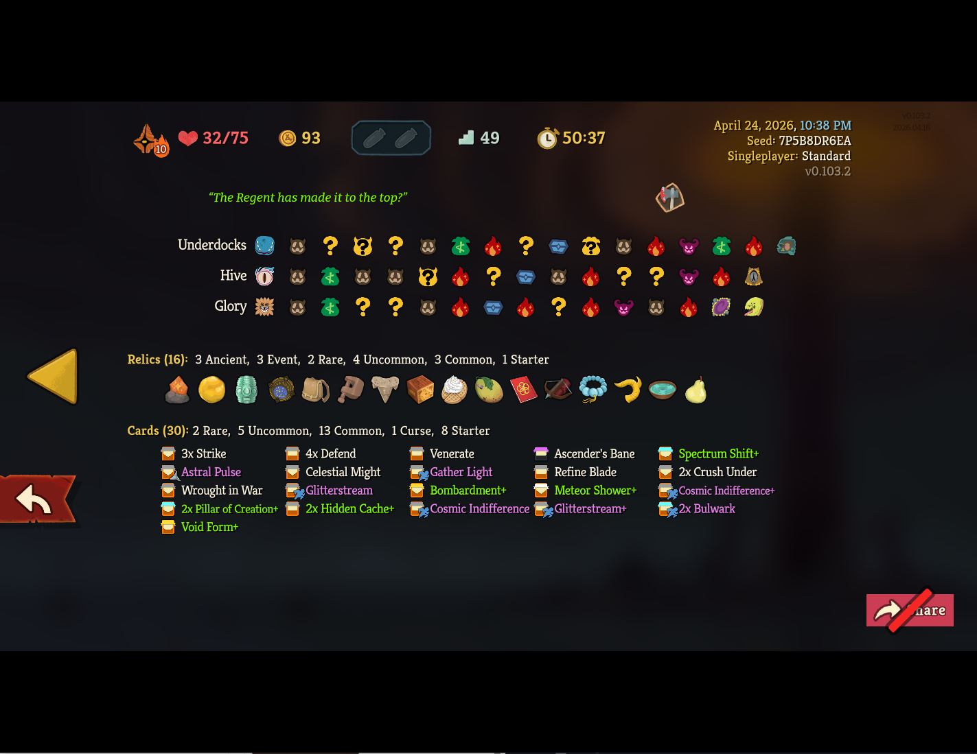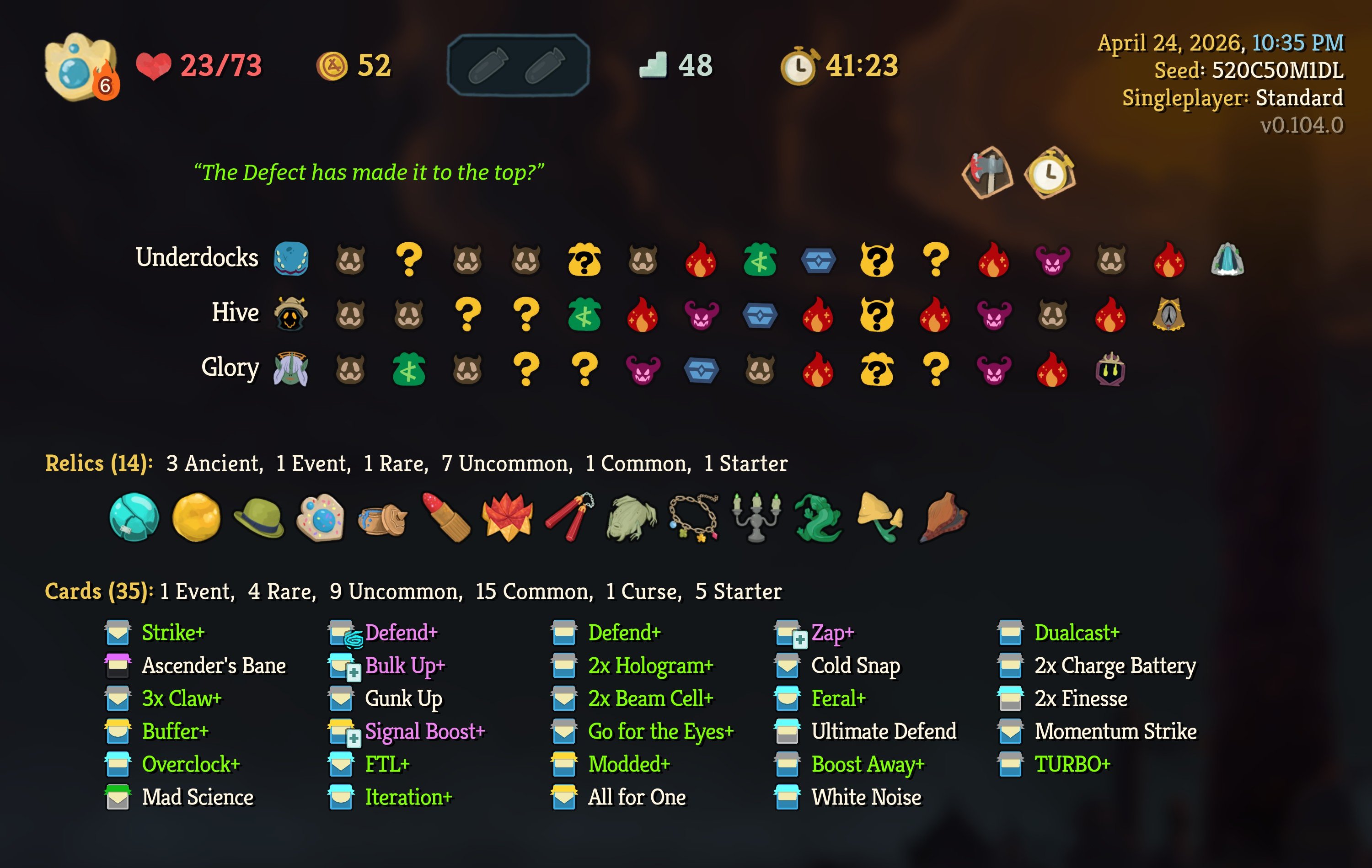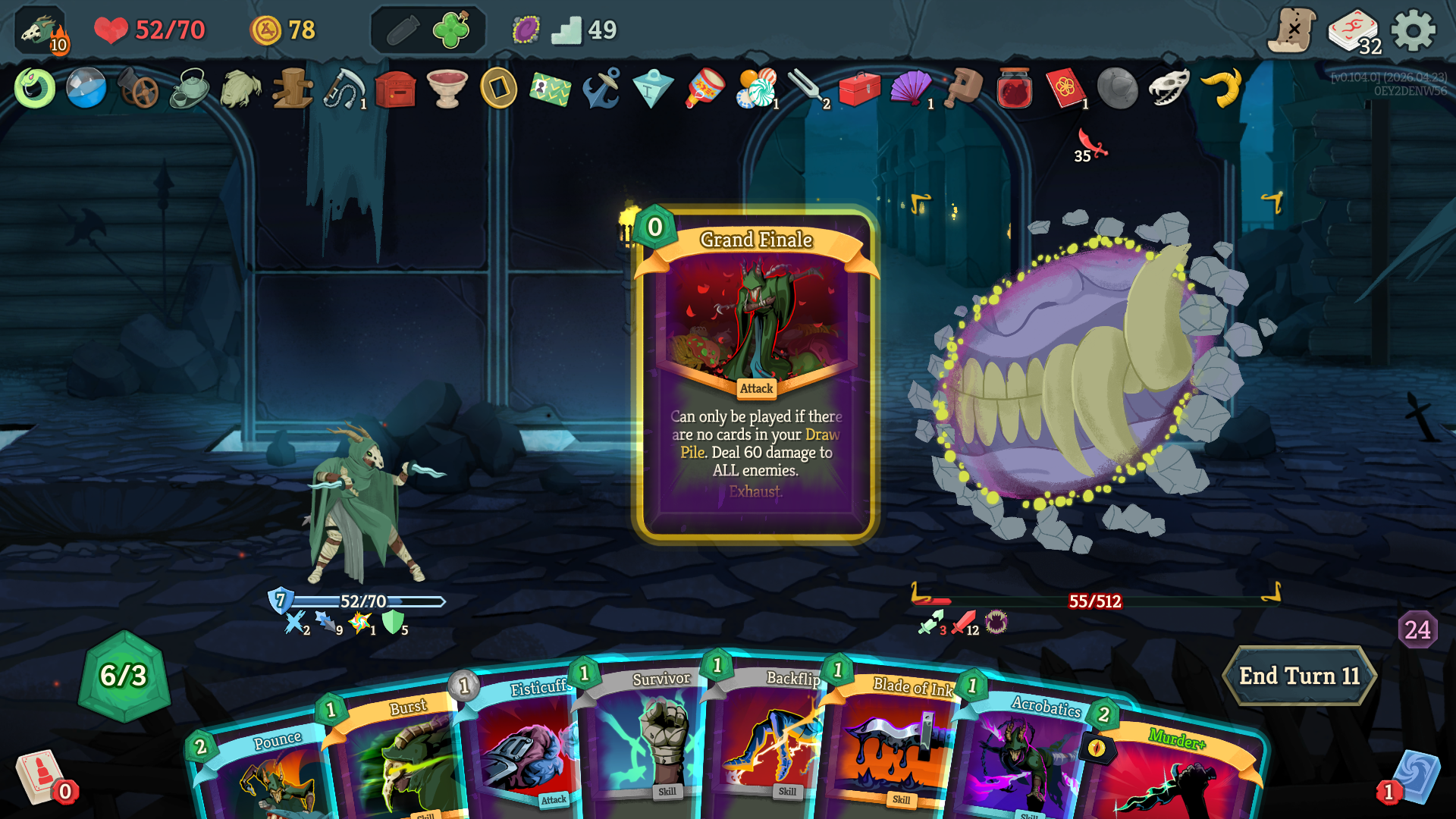 One step closer to a10 after weeks of neglecting my solo climb in favour of joining multiplayer lobbies, where I've technically got several a10 wins alreadySomehow, I only just realized during this run that Signal Boost isn't merely a renamed Amplify and doesn't wear off at the end of your turn