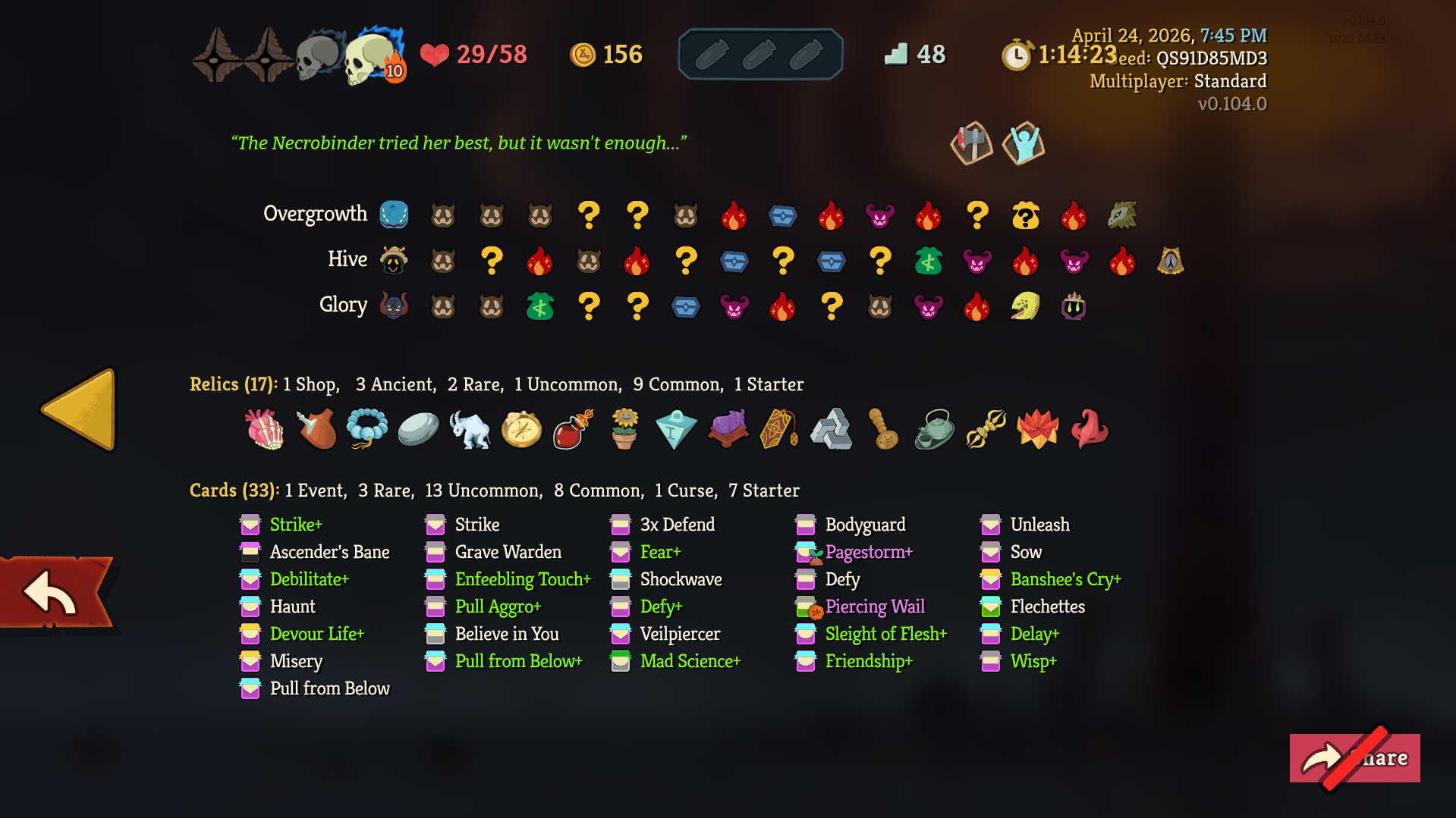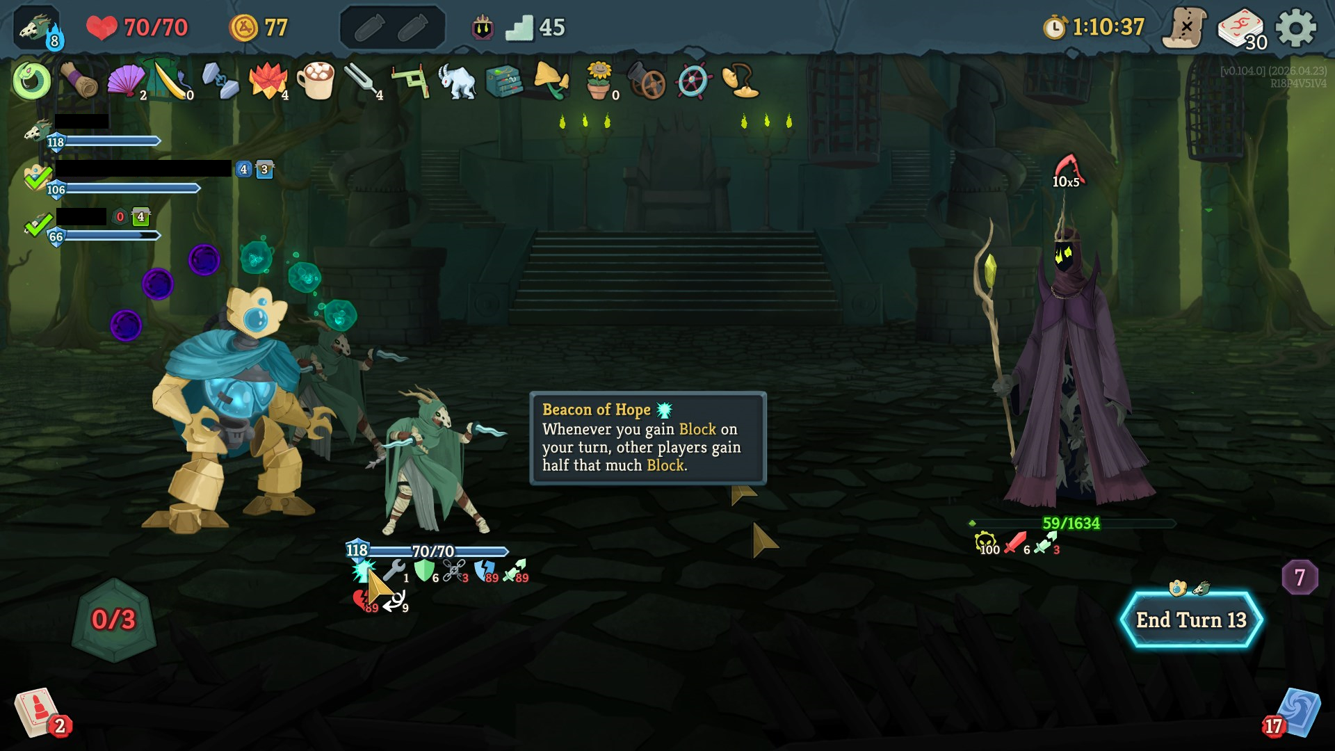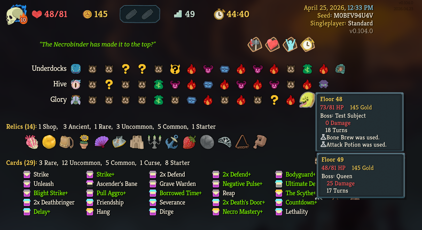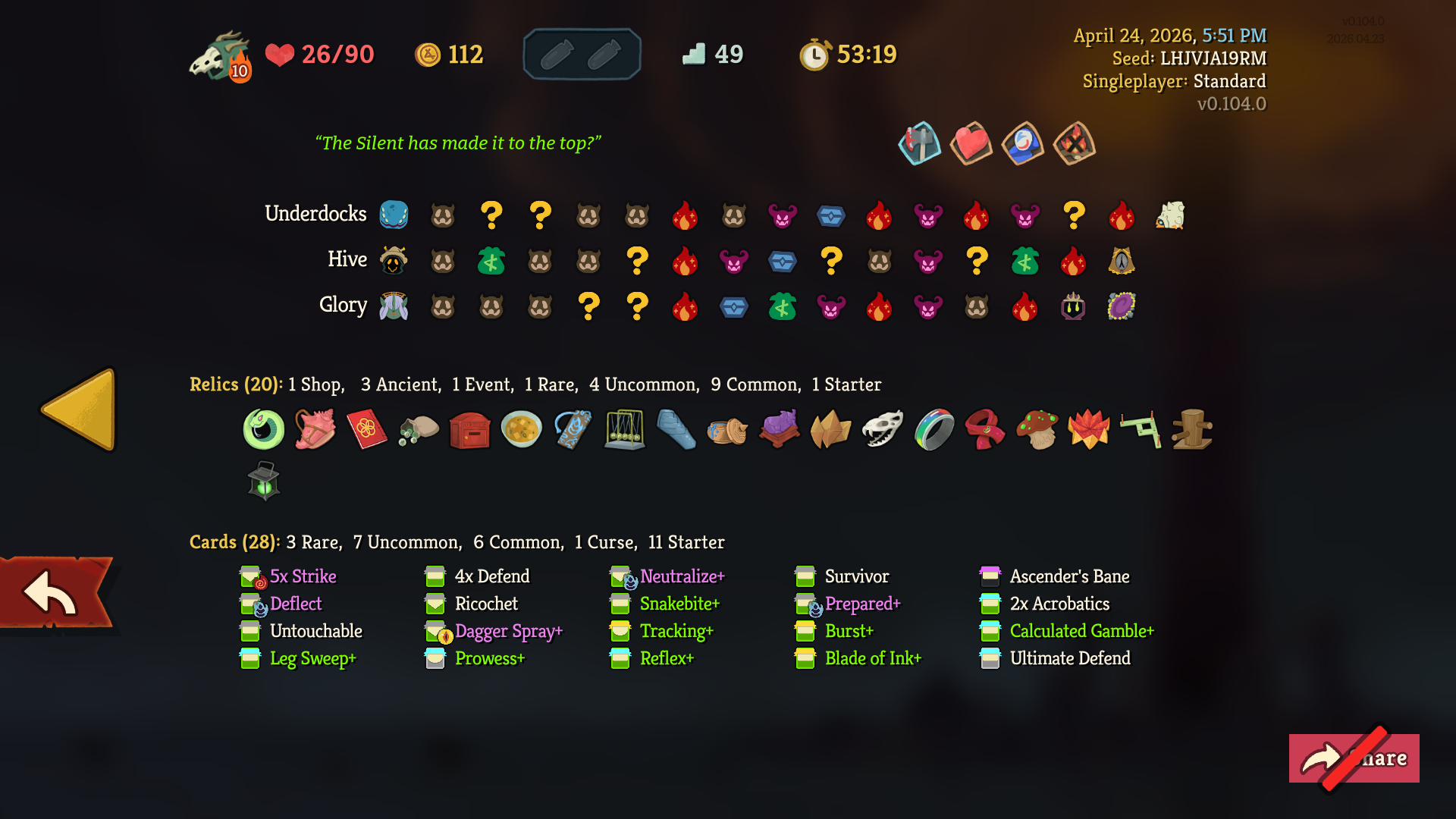 One step closer to a10 after weeks of neglecting my solo climb in favour of joining multiplayer lobbies, where I've technically got several a10 wins alreadySomehow, I only just realized during this run that Signal Boost isn't merely a renamed Amplify and doesn't wear off at the end of your turn