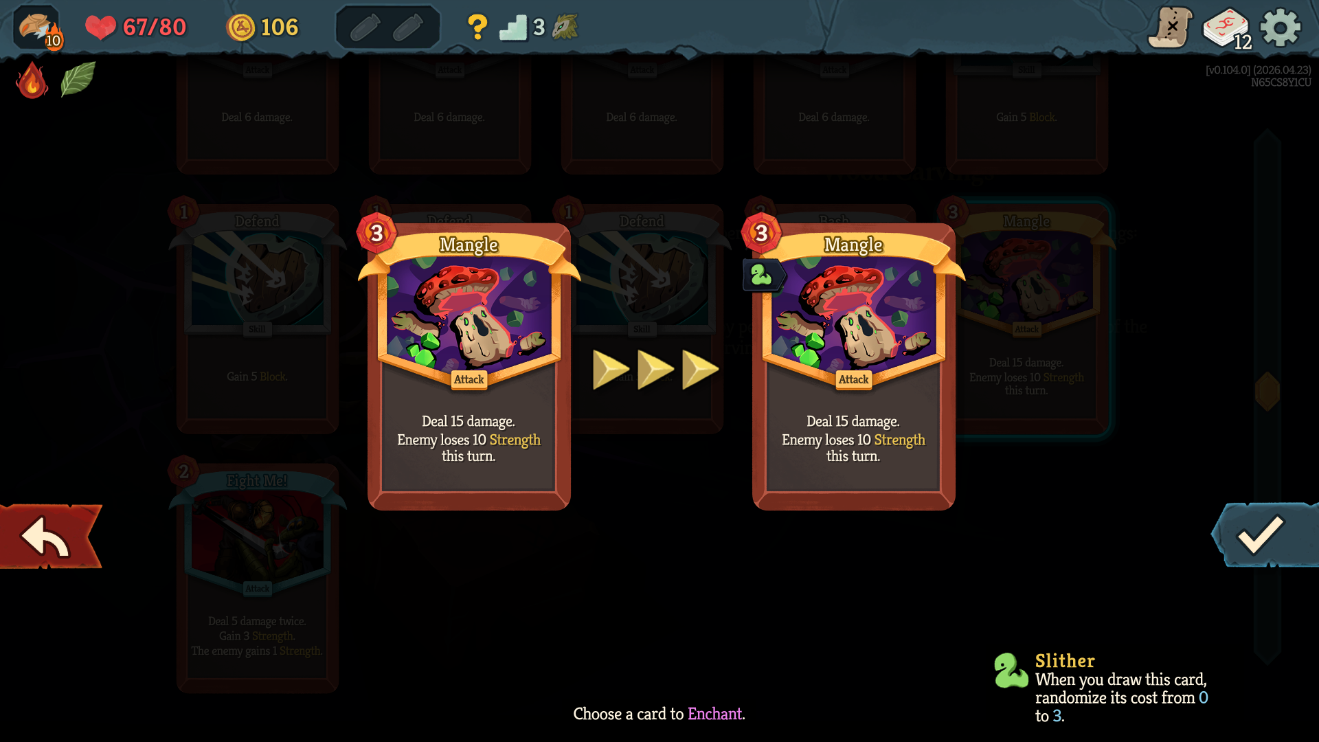 >>737573674Without knowing the context of your deck, I'm probably considering Mangle the most. It can often full block a turn so you dont even care about the 3 energy cost.