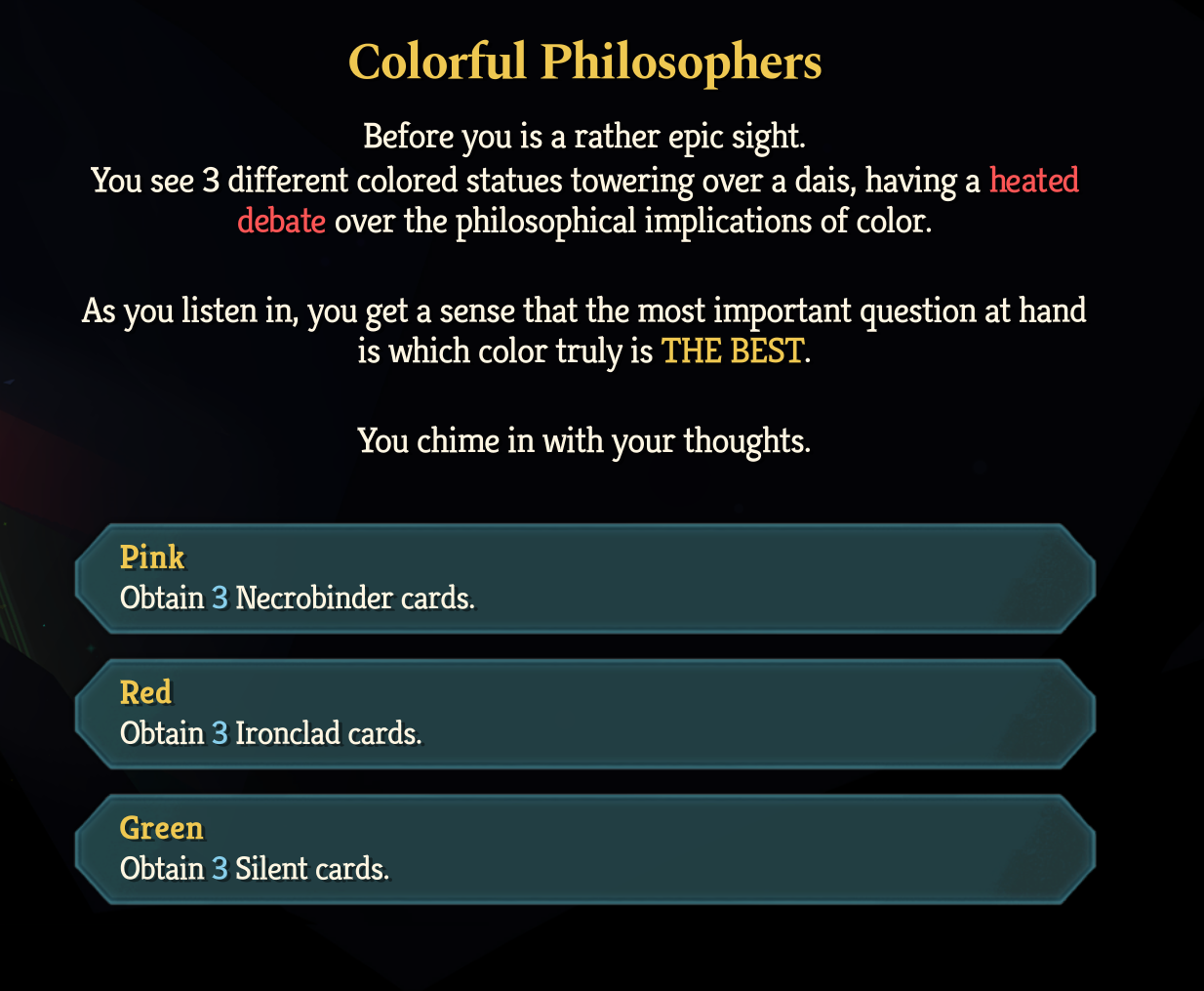 >>737570319Yeah, it's pretty good on Ironclad and Regent especially since they have so many multihit attacks.>>737570735Same, but my reasoning is that I think the ? rooms are more fun than fights usually.