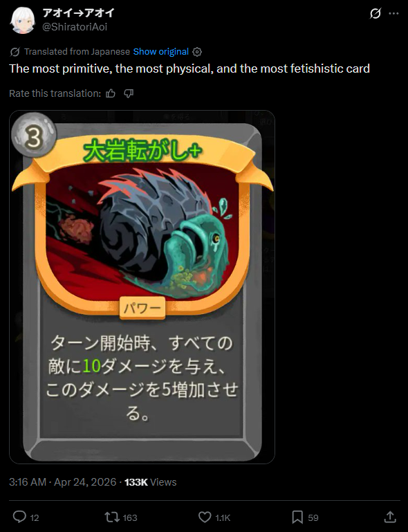 >>737611379>Fetishistic card>It's a picture of a rock crushing an animalWhy are the chinese like this?
