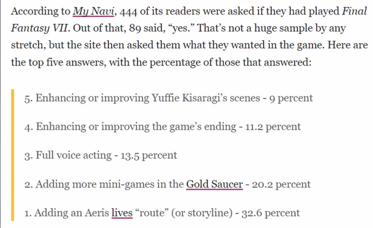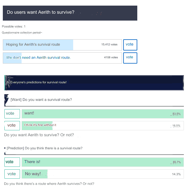 >>737579378I forgot to tag you relax also see >>737573302>>737579163>everyonethey don't matter. Saving Aerith was the biggest request since forever