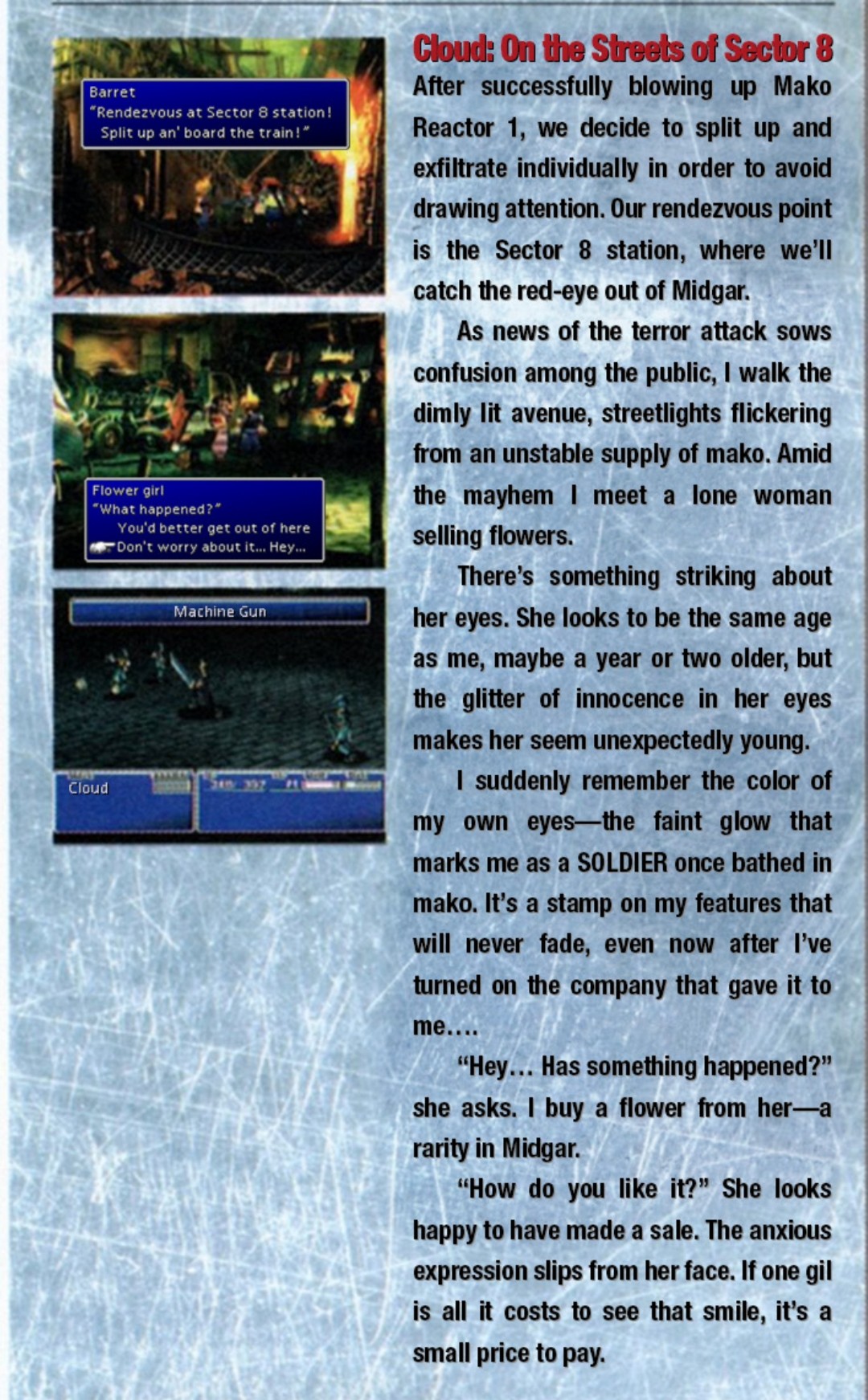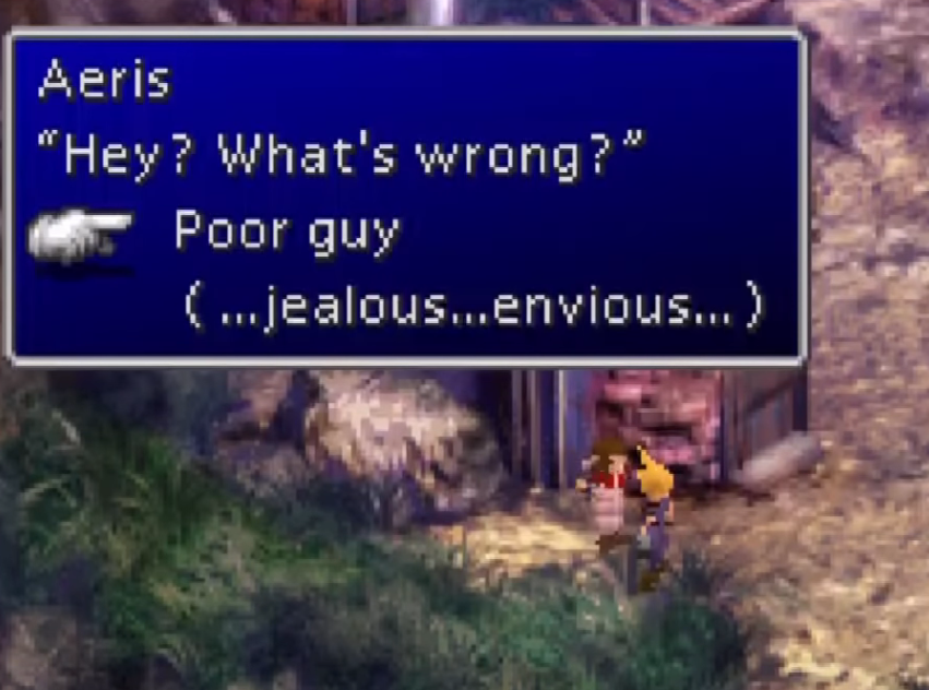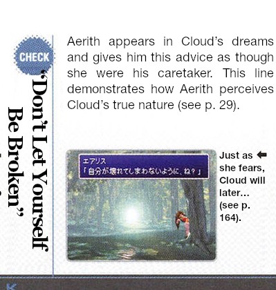 I wish I had gifs of scared Aerith when these walls of text start to appear.