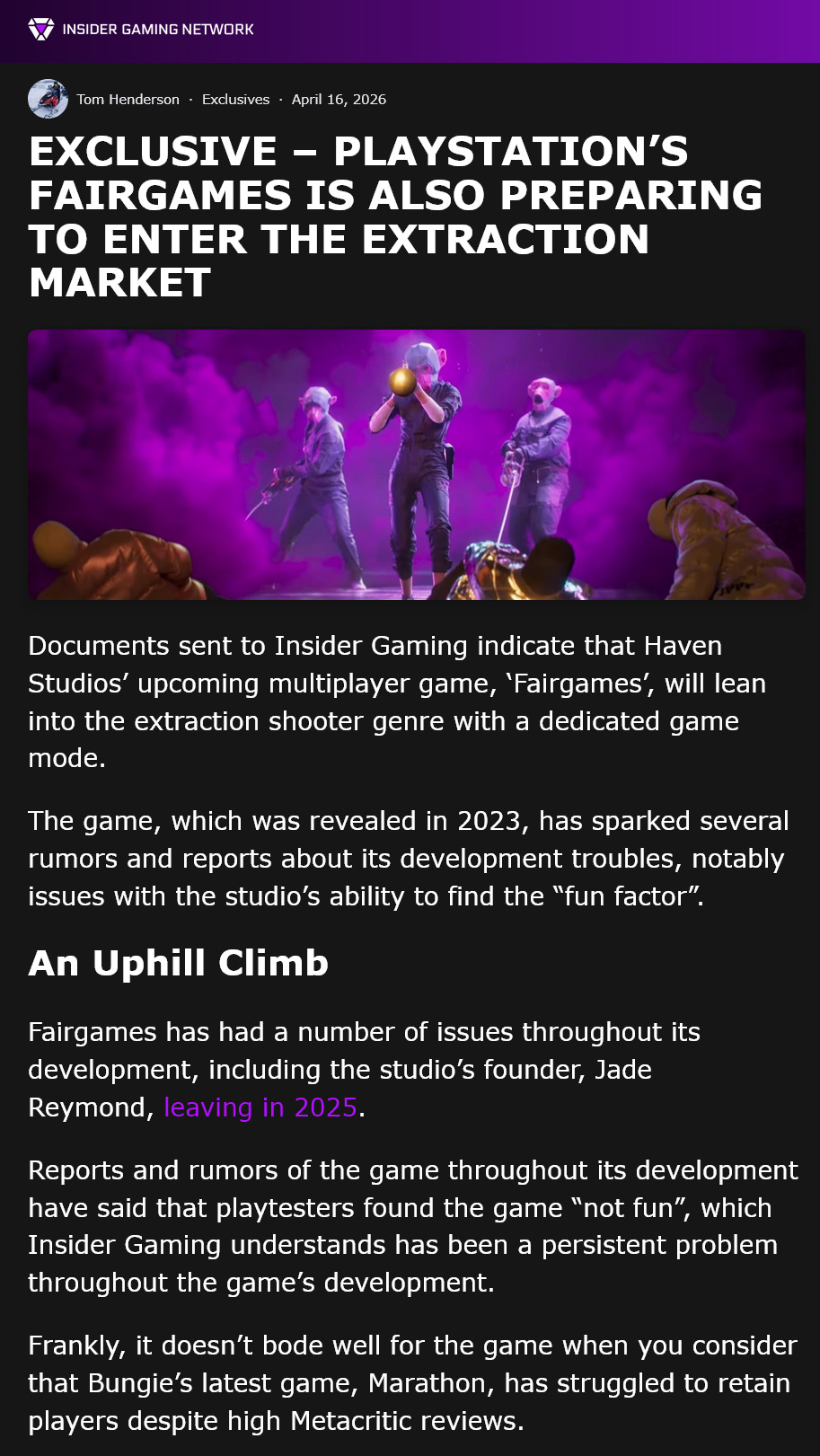 >>737573269It won't last more than two weeks before doing a concord, there's literally zero interest in this game, and jade raymond literally isn't even at the company anymore, so double worse, or better if she was a hack