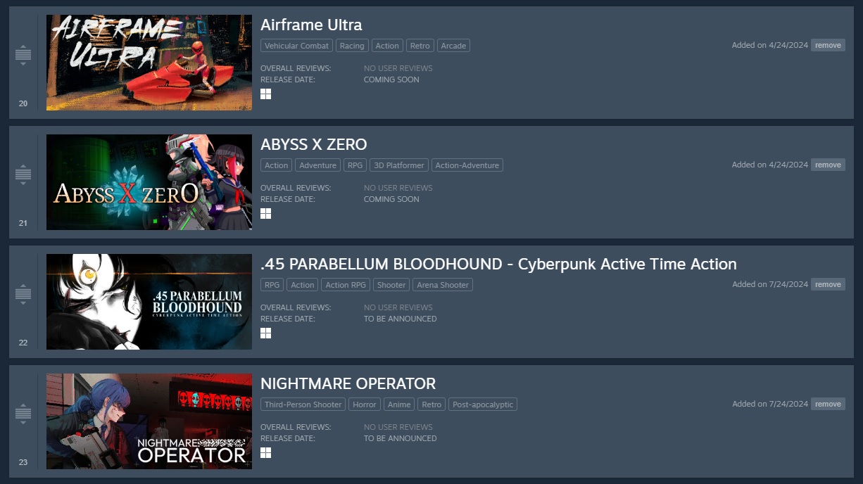 >>737644715Hi! please wishlist. https://store.steampowered.com/app/3014650/45_PARABELLUM_BLOODHOUND__Cyberpunk_Active_Time_Action/I am running out of estrogen.