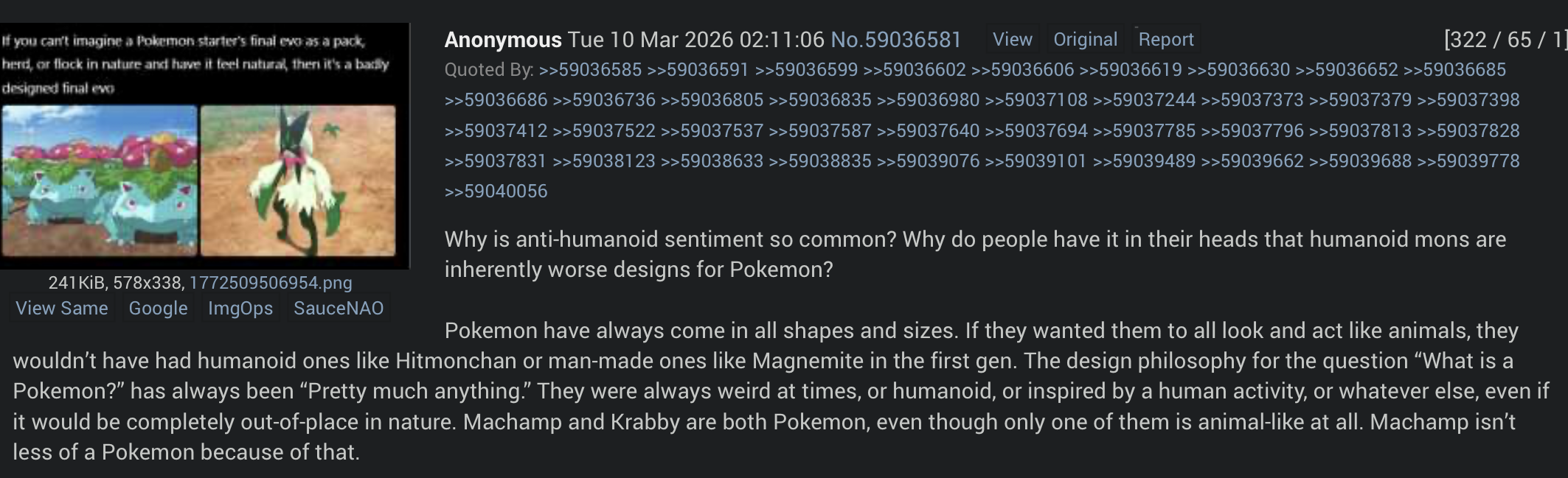 He's made these threads and "argued" that humanoid Pokemon are exactly like people many, many, MANY times. It's the same brain damage that drives other posters like ACfag.