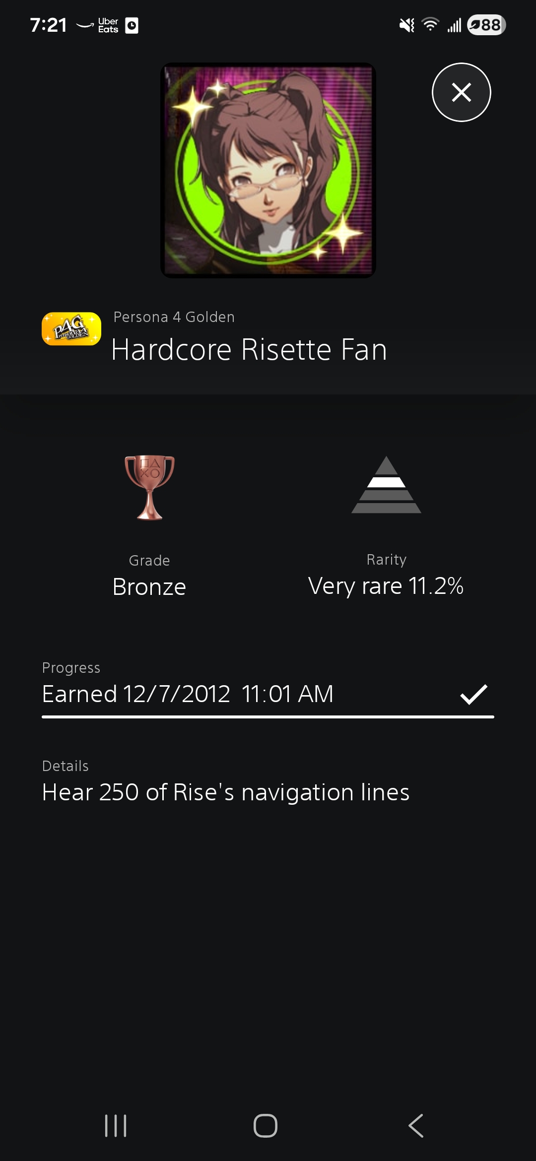 >>737588279>How much do you love Persona 4?I bought a Vita just for Golden and even platinum it.That means I even did the Risette fan trophy as well.
