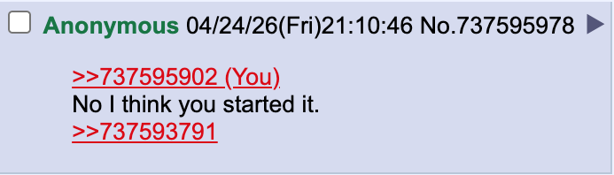 >>737595902No I think you started it.>>737593791